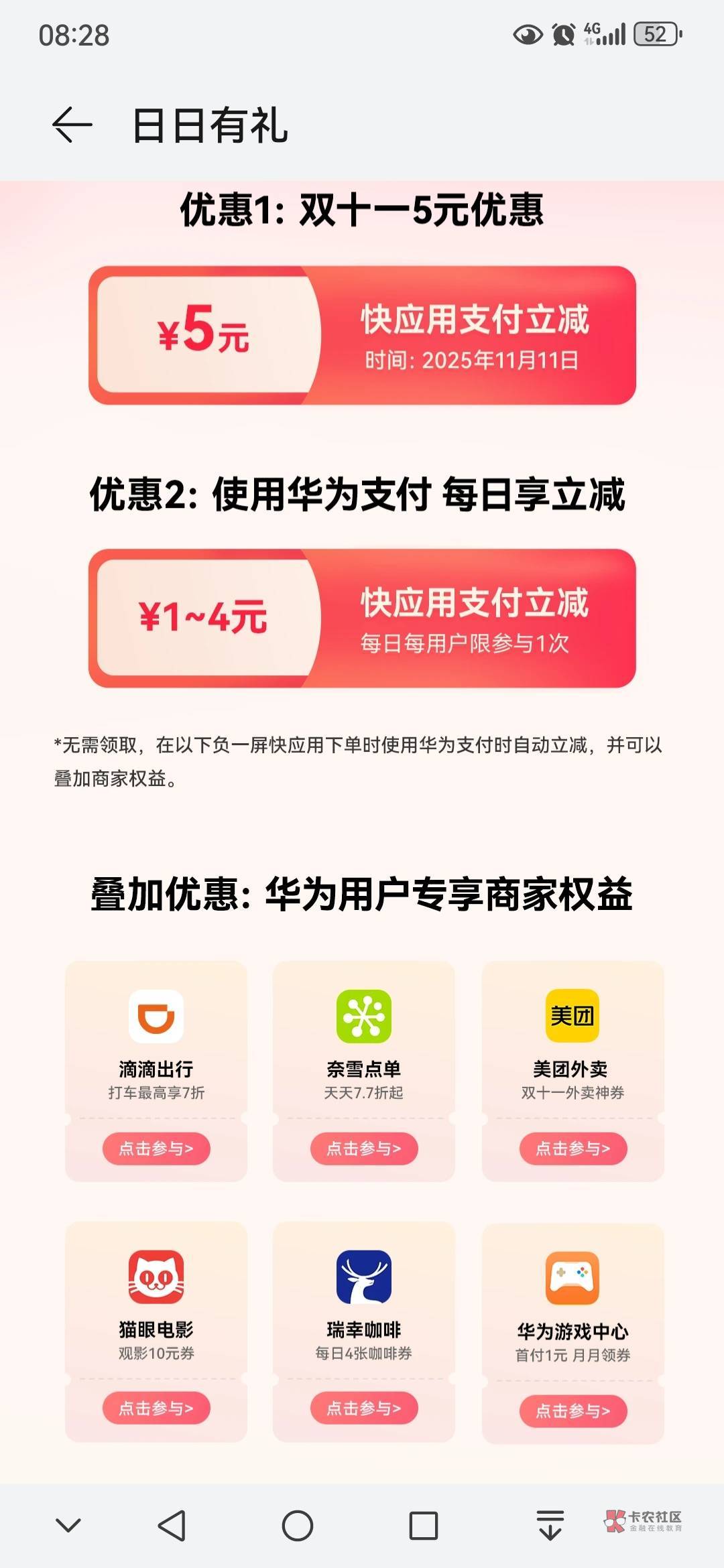 华为负一屏双11优惠立减5,限线上商户只能下面这几个