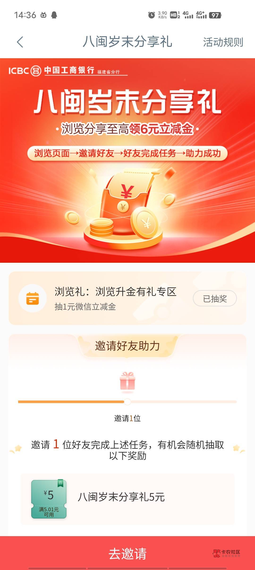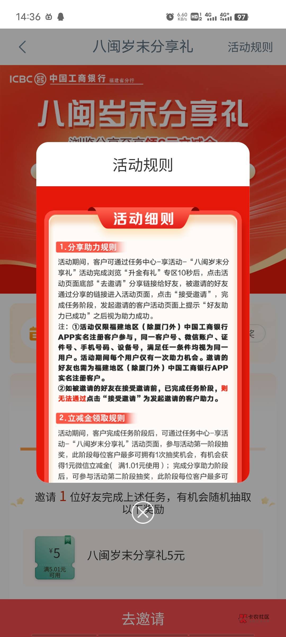 工行分享5立减金有人没,好像限福建