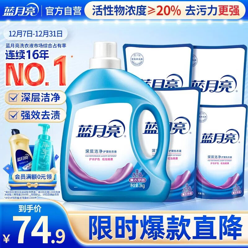 蓝月亮 洗衣液6.5kg,4首单 拍2件82.32 结算页面用云闪付(每周