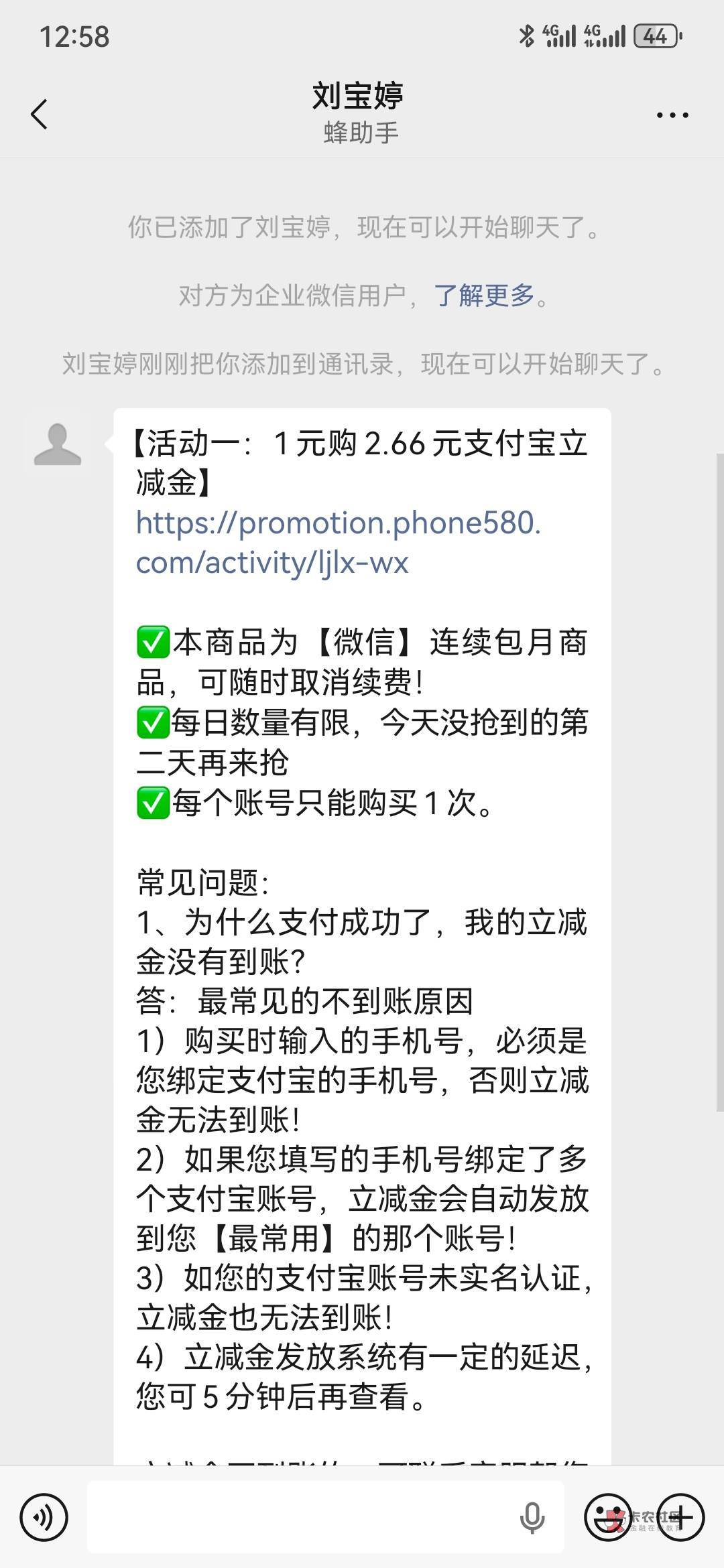 蜂助手,5个号,9毛。加企微,1买2.66立减金。一v一次,多v多买。链接,无头。