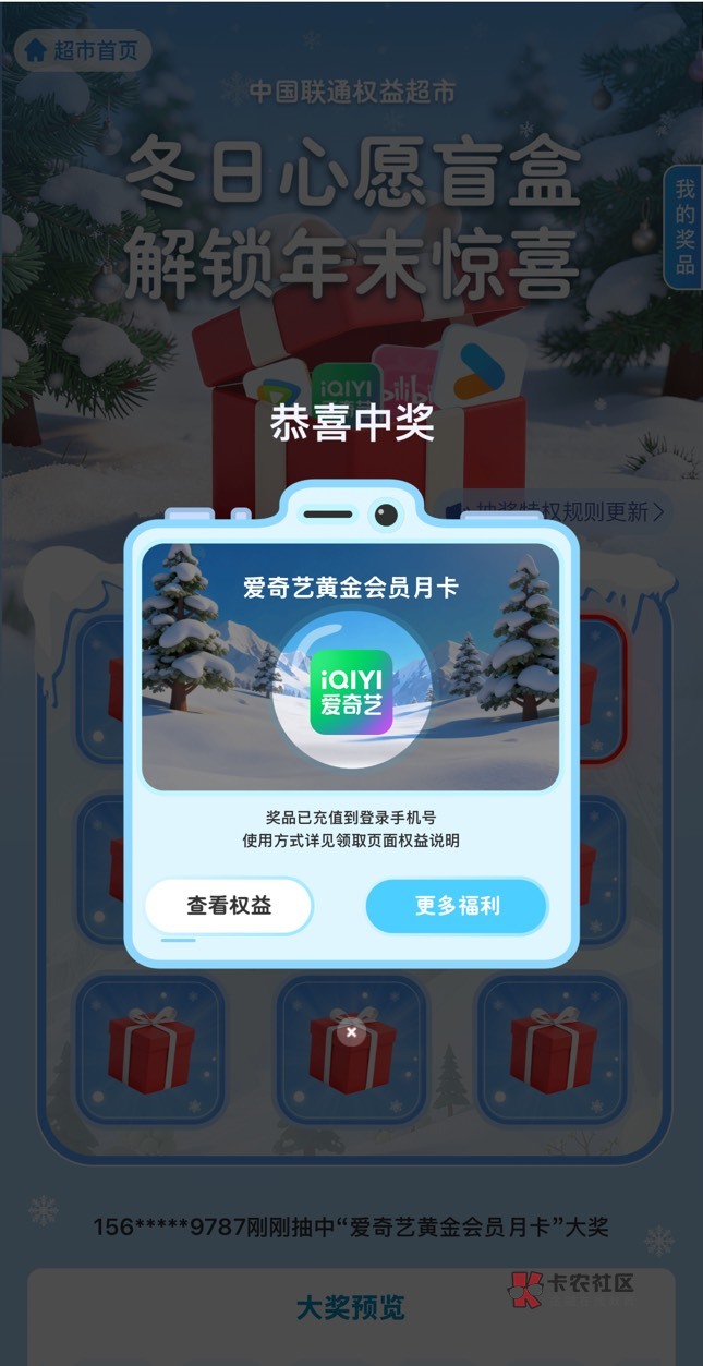 联通-权益超市-年末抽奖 a奇艺 可能还有