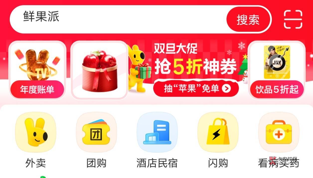 美团首页双旦大促抽免单