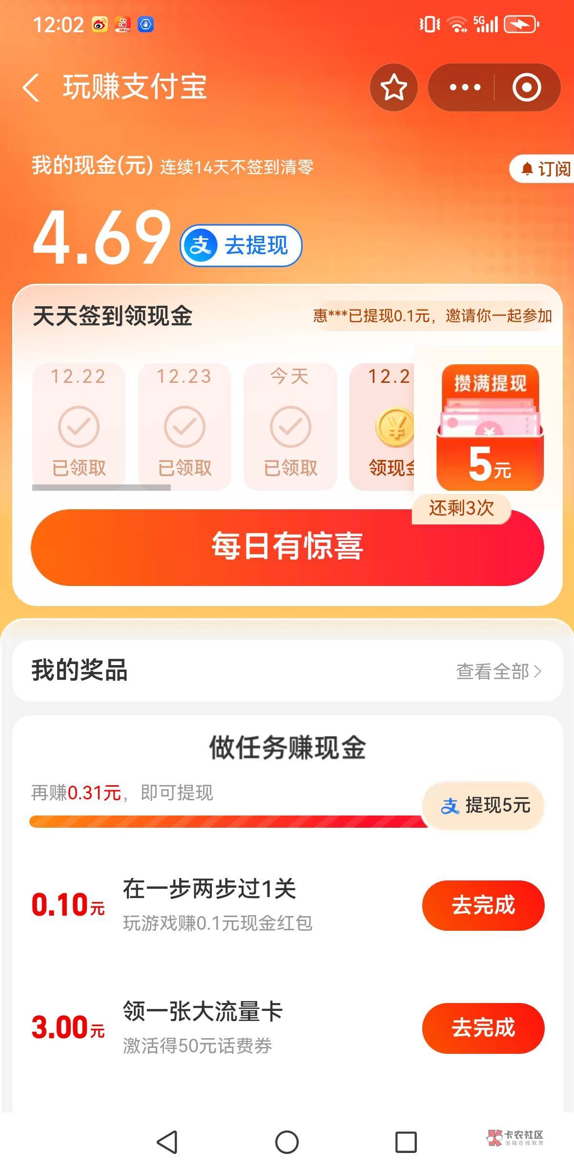 老哥们,玩赚支付宝零申请5,申请好几天了,每天更新一次游 ...