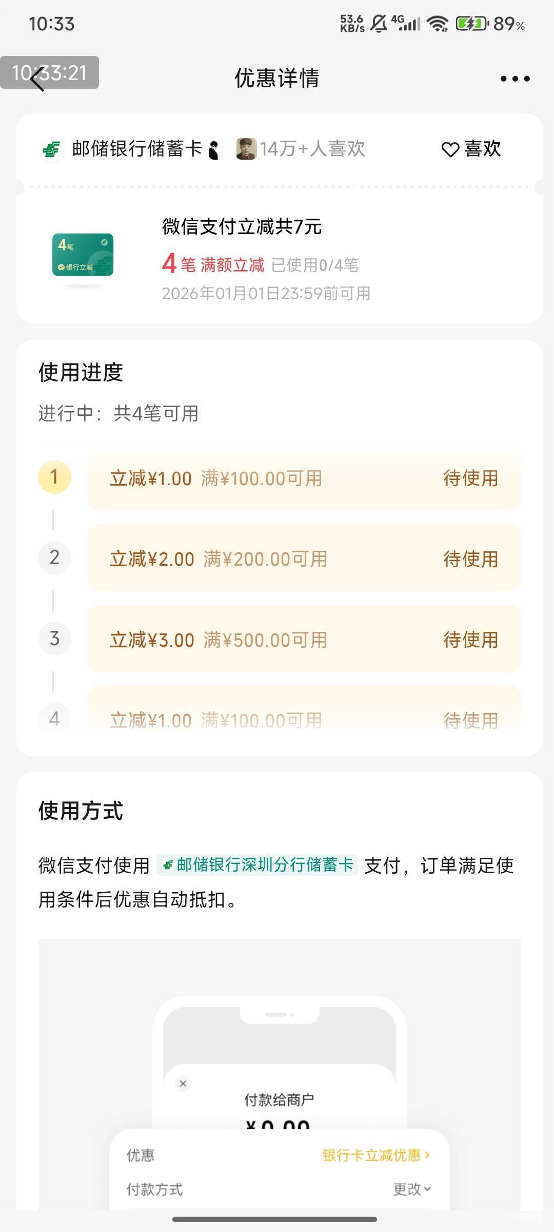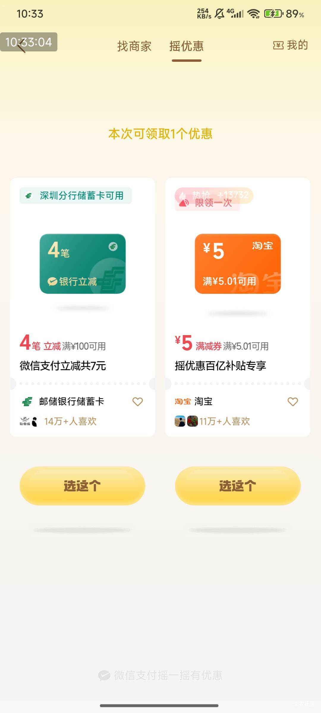深圳邮储多笔立减金,7毛,支付摇一摇! ...