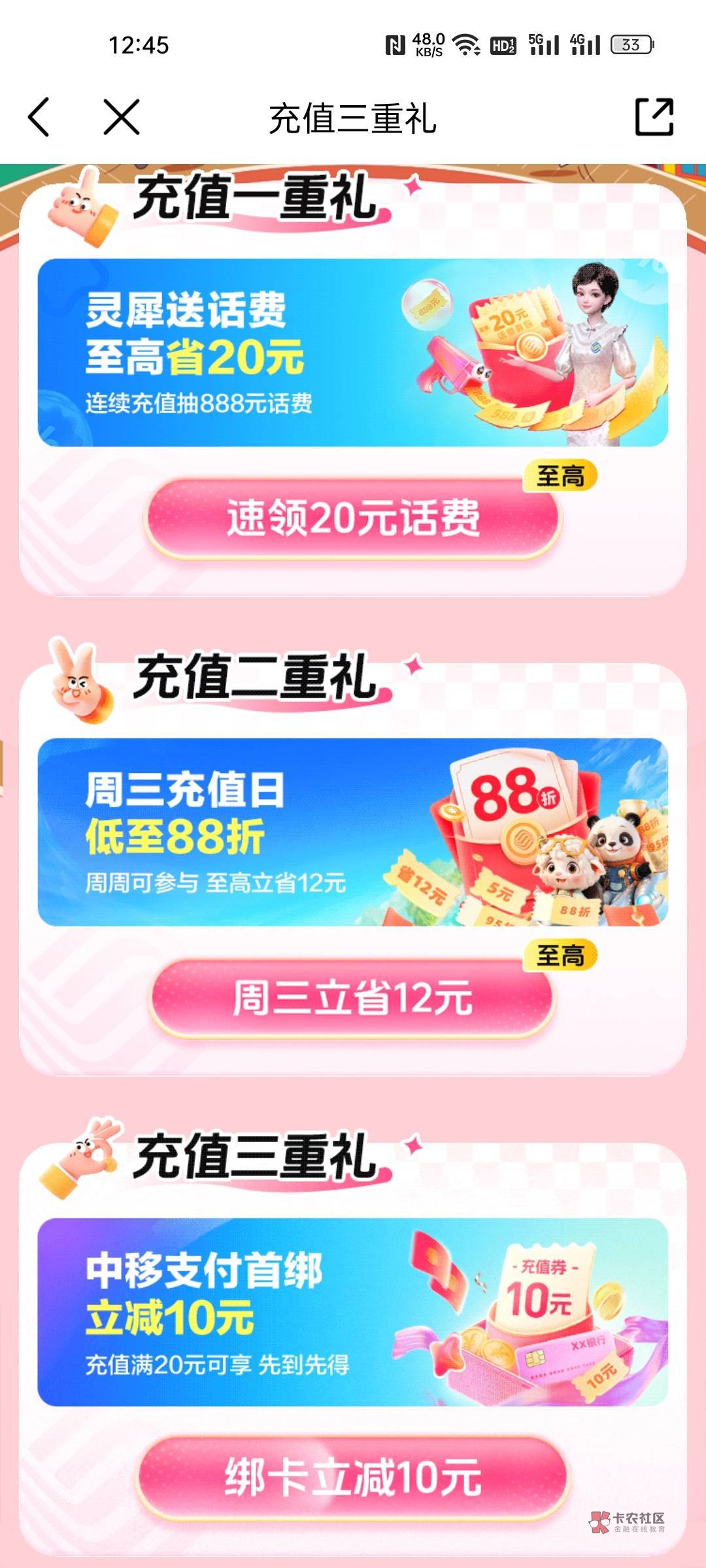 老公们,月底了,没有充话费的可以申请出战,中国银行APP话费充值最高减20