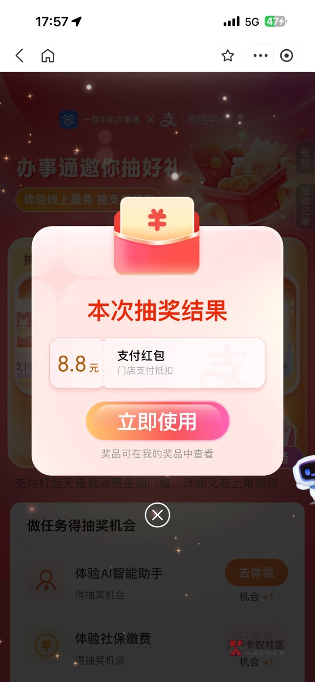支付宝搜皖事通不要管中不中奖直接看卡包就可以