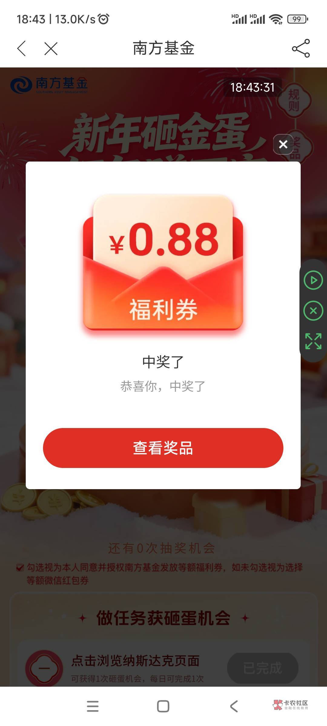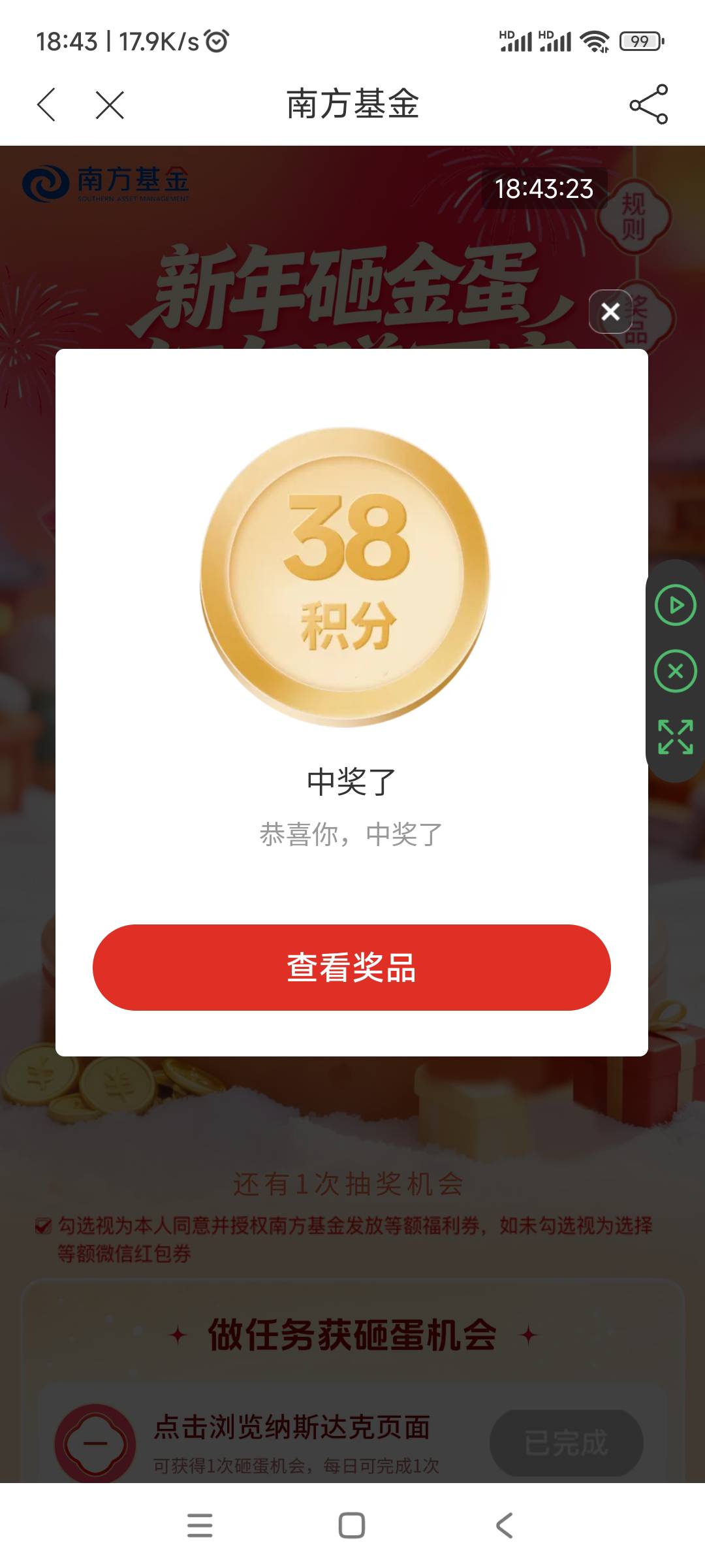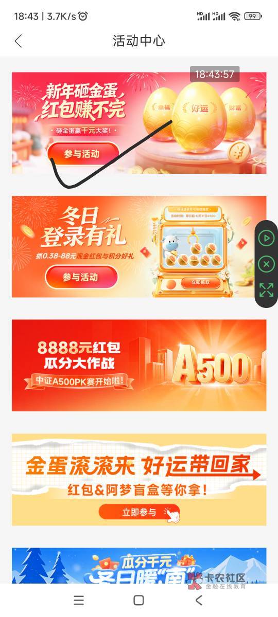 南方基金app,活动中心,新年砸金蛋,红包赚不完,红包加积分,此贴不做回复,仅供参考。