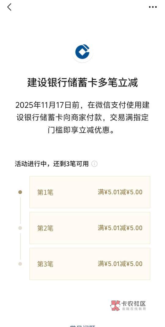 广西建行3笔5立减金,一共15 第一次见这么多的