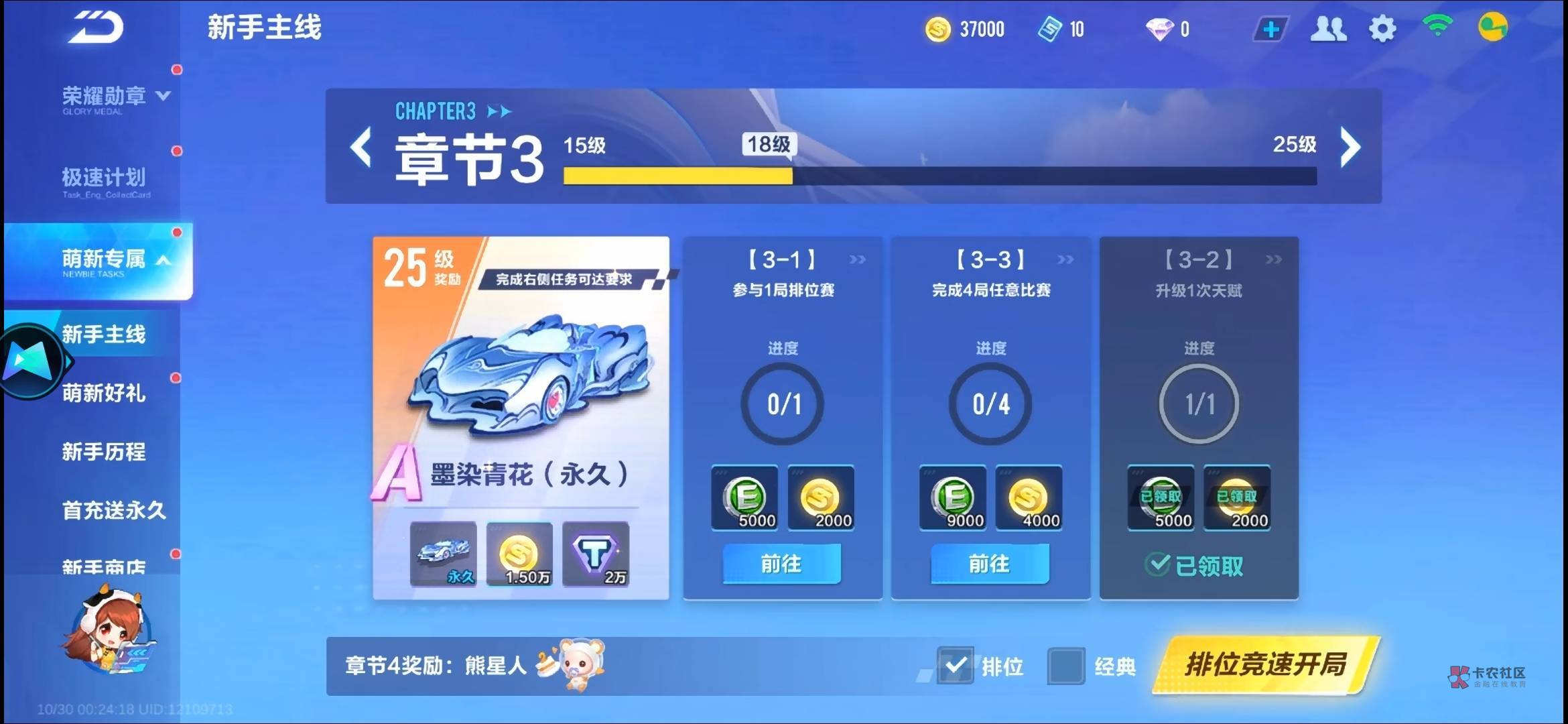 回归换区直接选老手15级,左上主线点进去升一下天赋就18级了一分钟