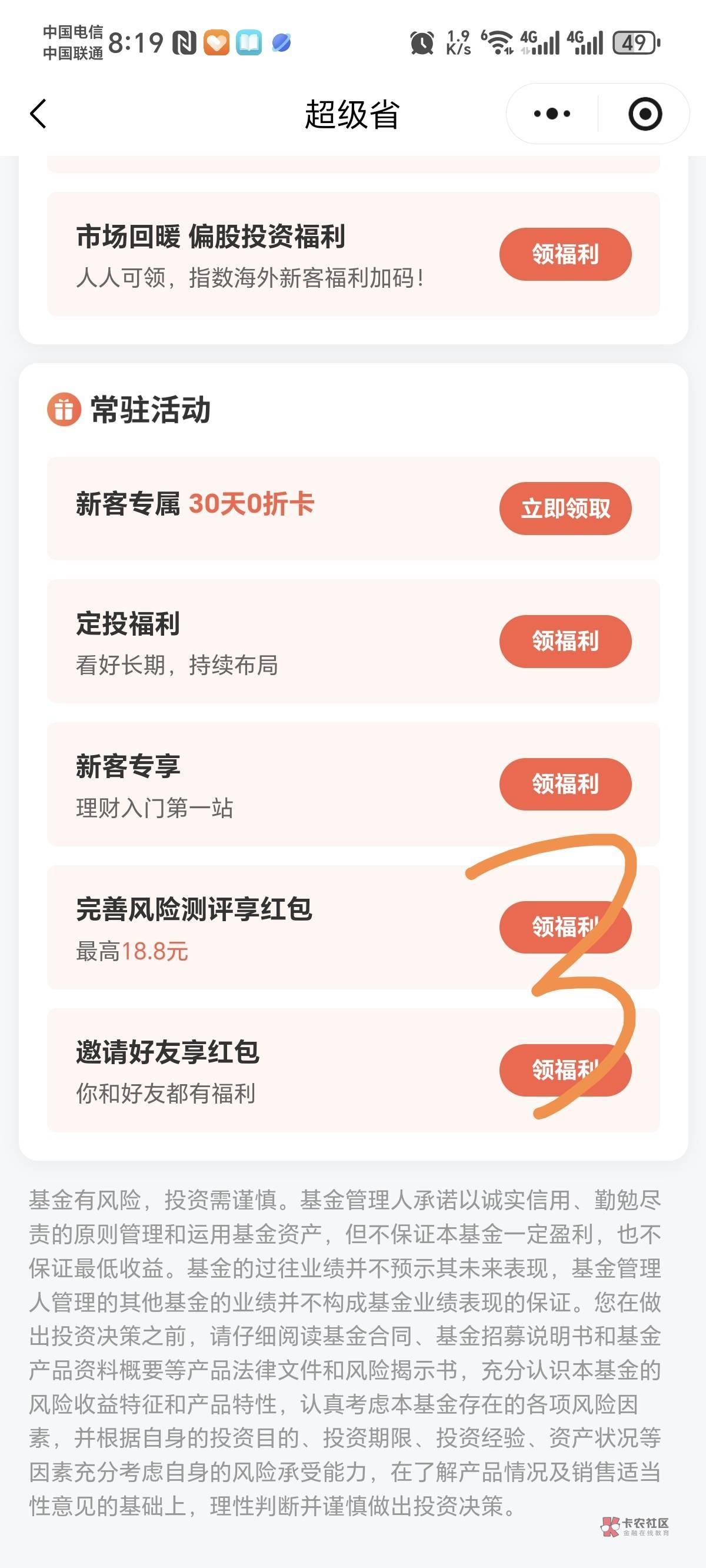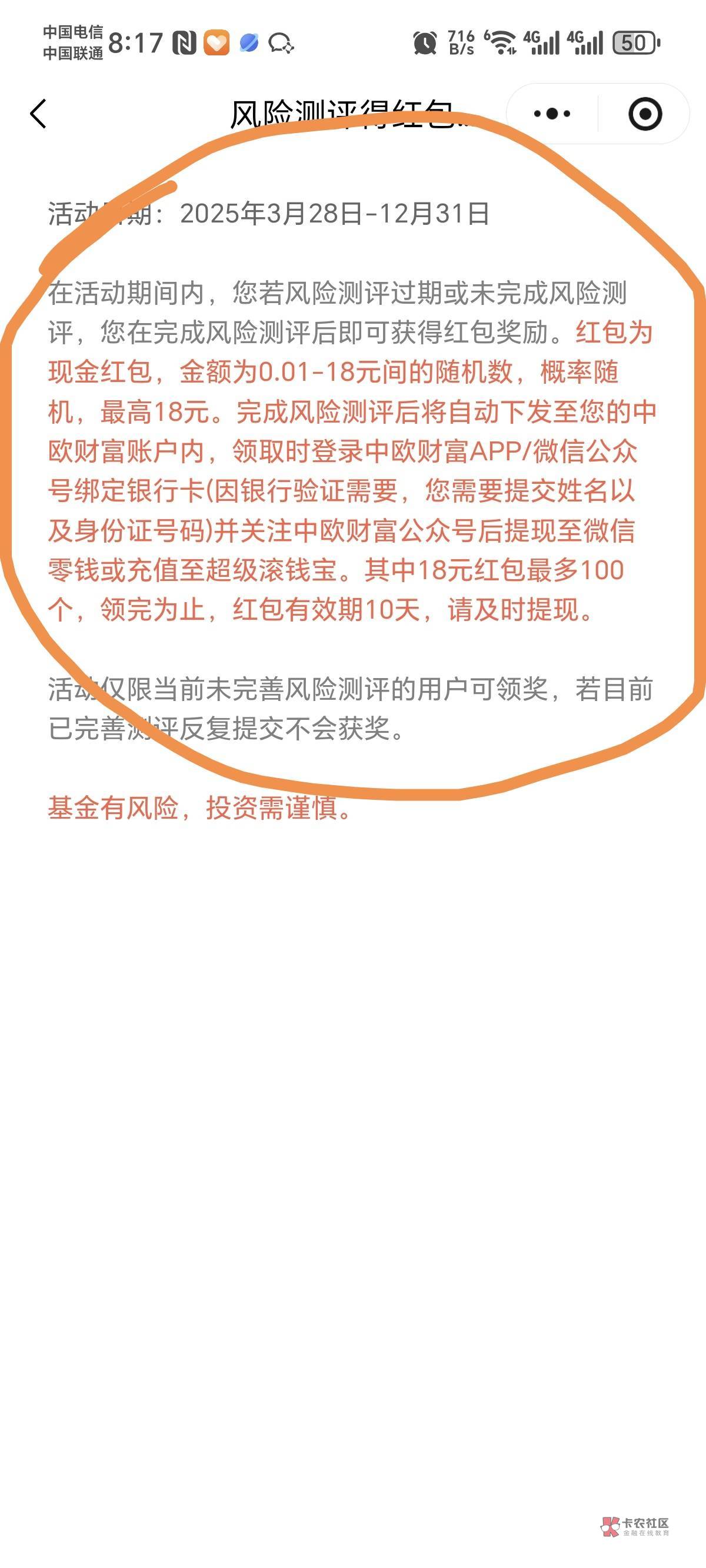 中欧财富风险测评过期或者没有测评过的领红包最高18块。