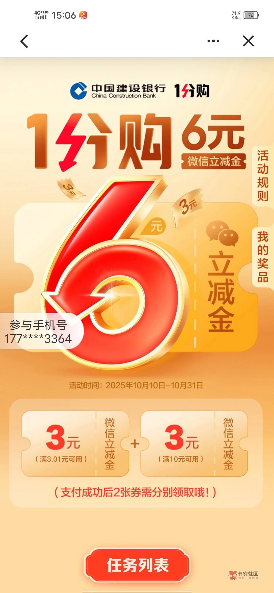 建行6元V.x立减金