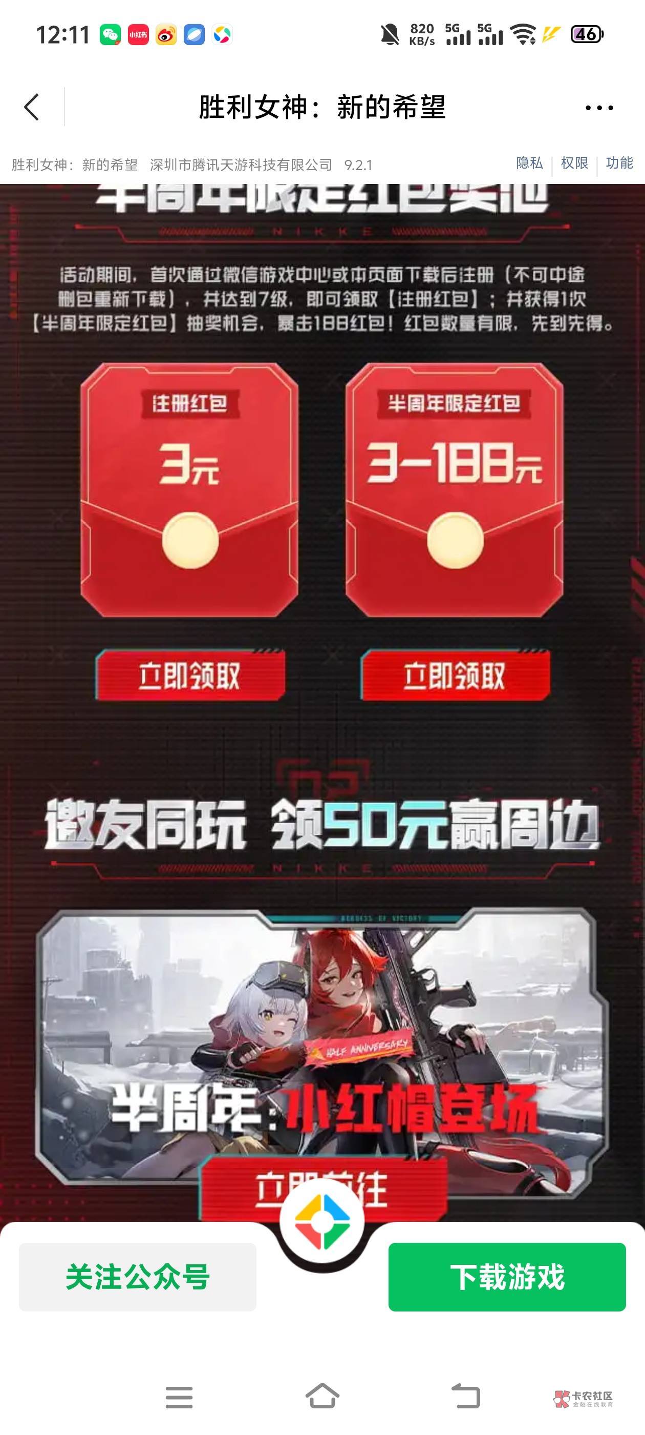 微信胜利女神10月29号新用户:https://game.weixin.qq.com/cgi-bin/actnew/newportalact/226501/lM6kQ6IBBhQweluY58hCyNnjzrRSDYD5xdGYeY5wcW8/main_page