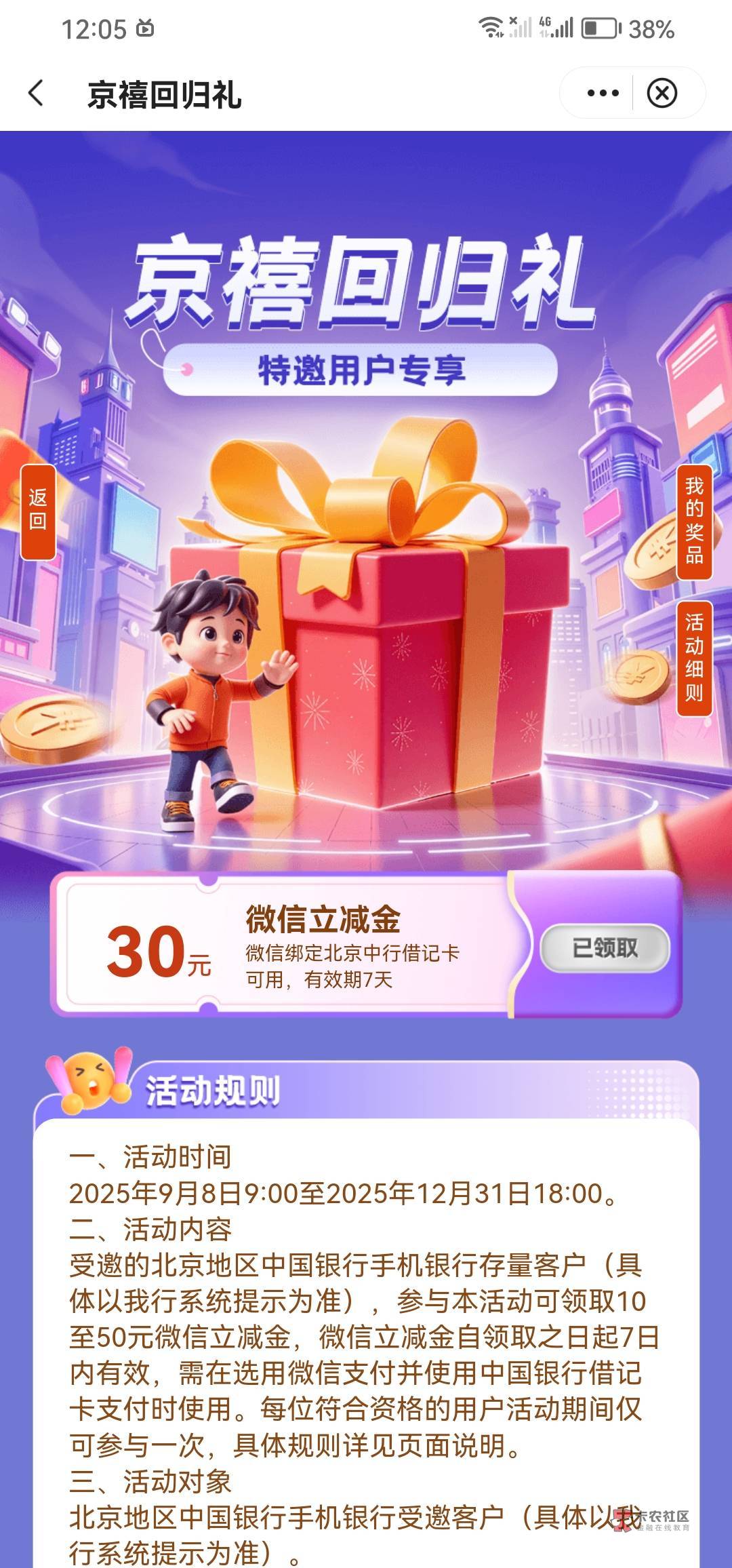 北京中行,本来飞过来就想领个5。莫名其妙给了30