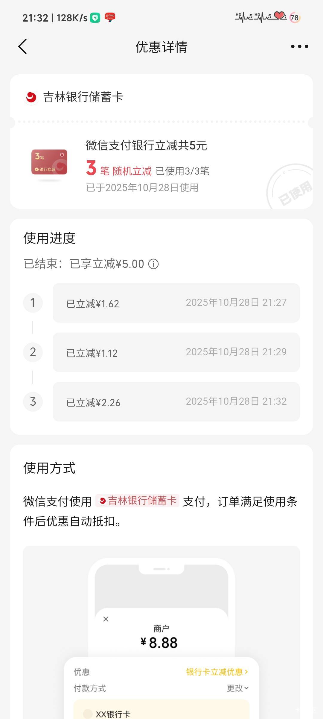 工商信用卡6笔上午没得,刚才买东西发现又有5笔立减