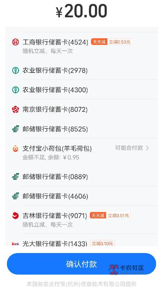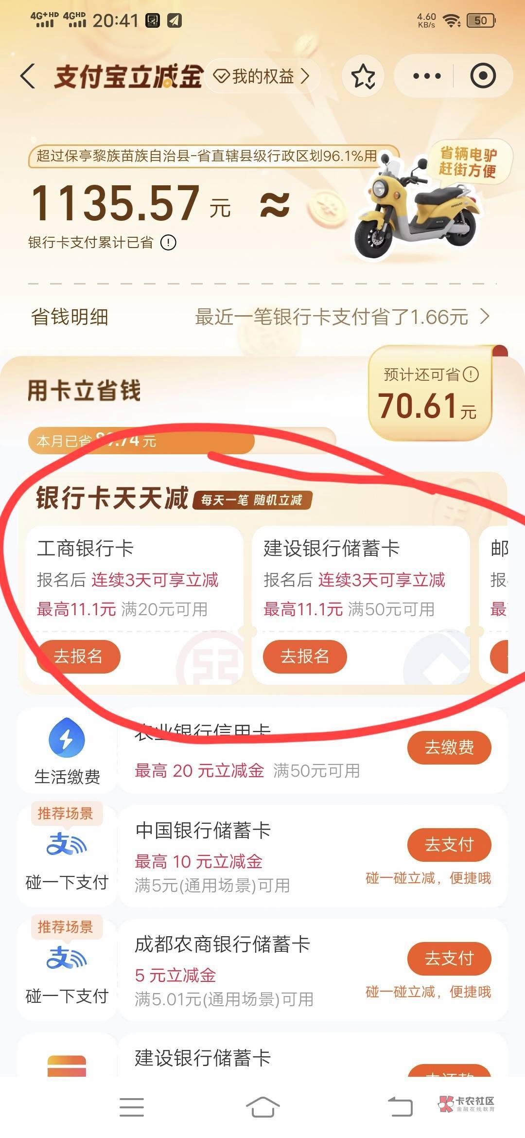 支付宝 YHK银行 YHK天天减,有8个银行的卡能报名,看得上得去