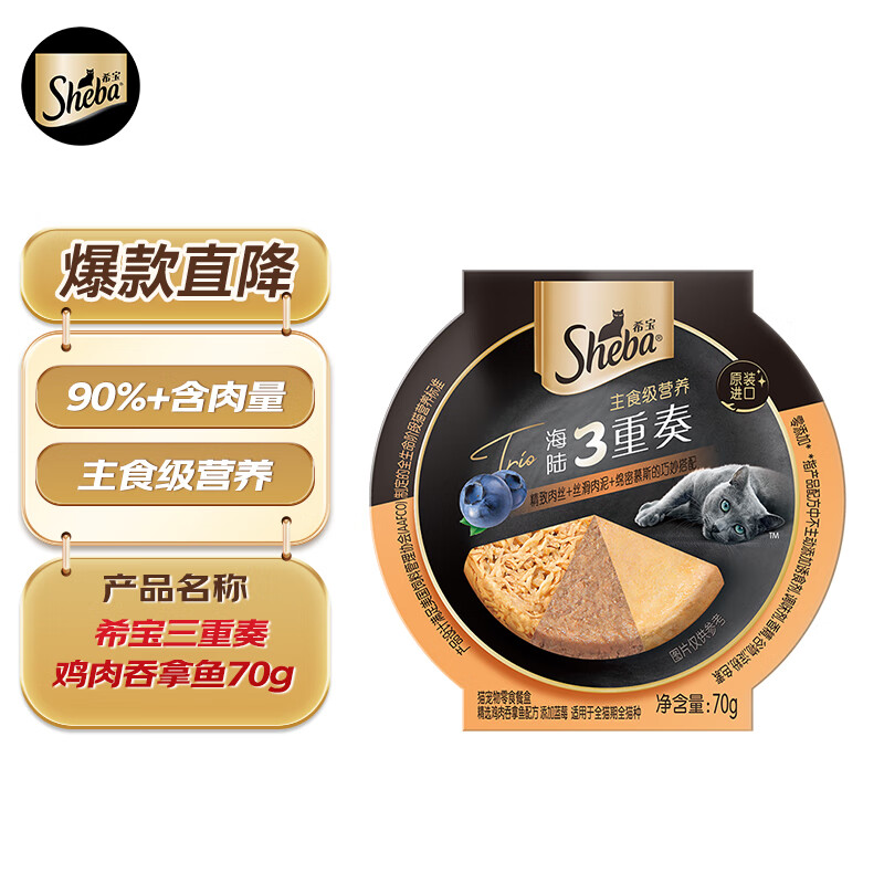 有首单2 希宝进口主食级猫罐头成猫幼猫三重奏高肉补水鸡肉吞拿鱼70ghttps://u.jd.com/TaNwREH