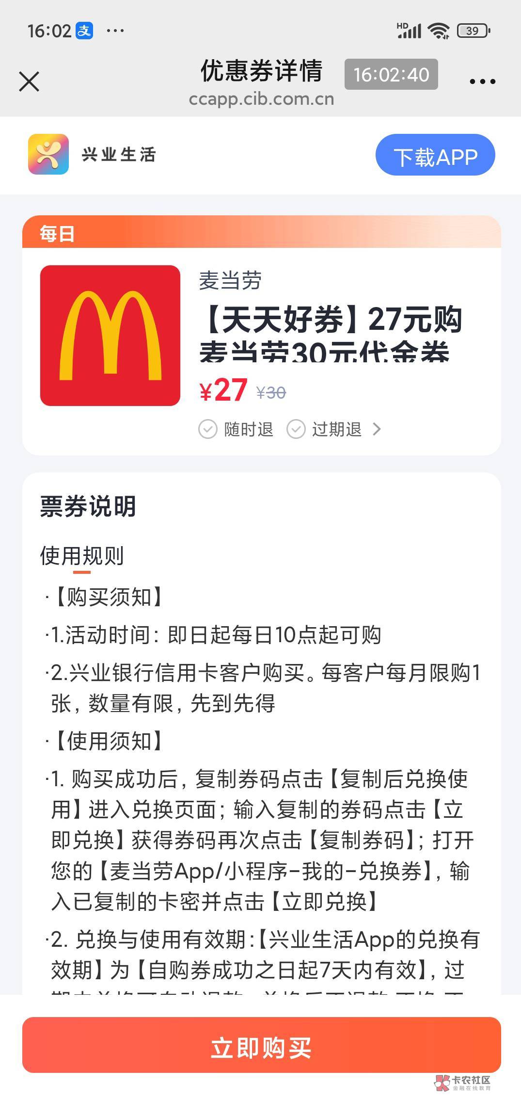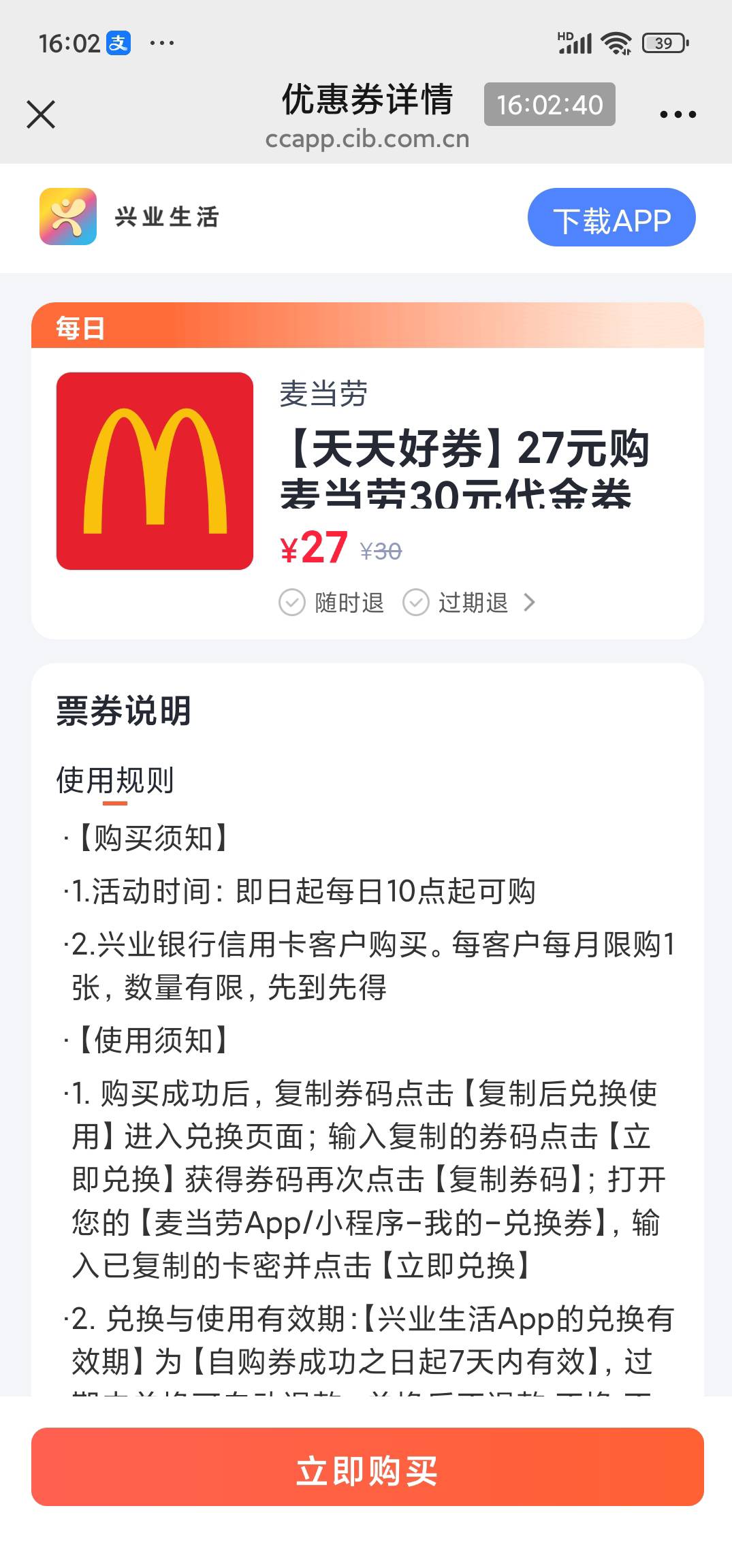 兴业生活27买30麦当劳券 https://ccapp.cib.com.cn/xlife-mobile/o2o-new/index.html#/coupon/couponDetailShare/10981963355054088?couponId=10981963355054088&cityCode=441900