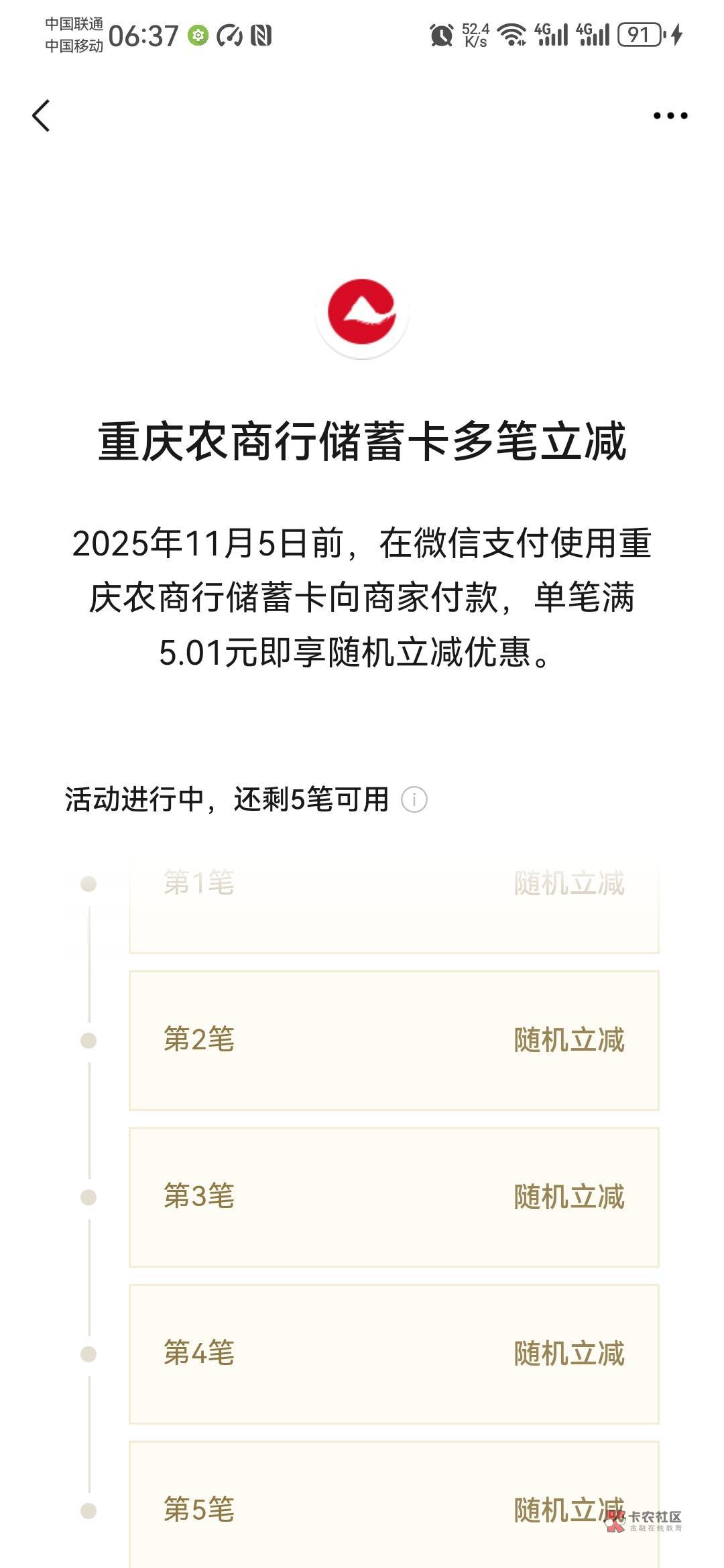 重庆农商,刚才参加了3比减5,换号又有5比满5.01随机减,不知道能减多少