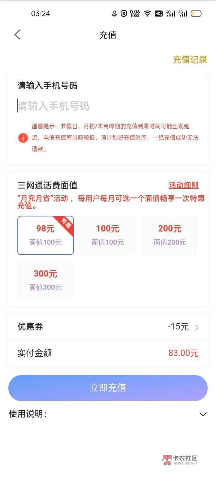 富滇银行,我的,等级里面可以领权益。话费券最少10,88充100话费。还有美团5,叠加红包使用。要有实体卡,电子卡支付不了。