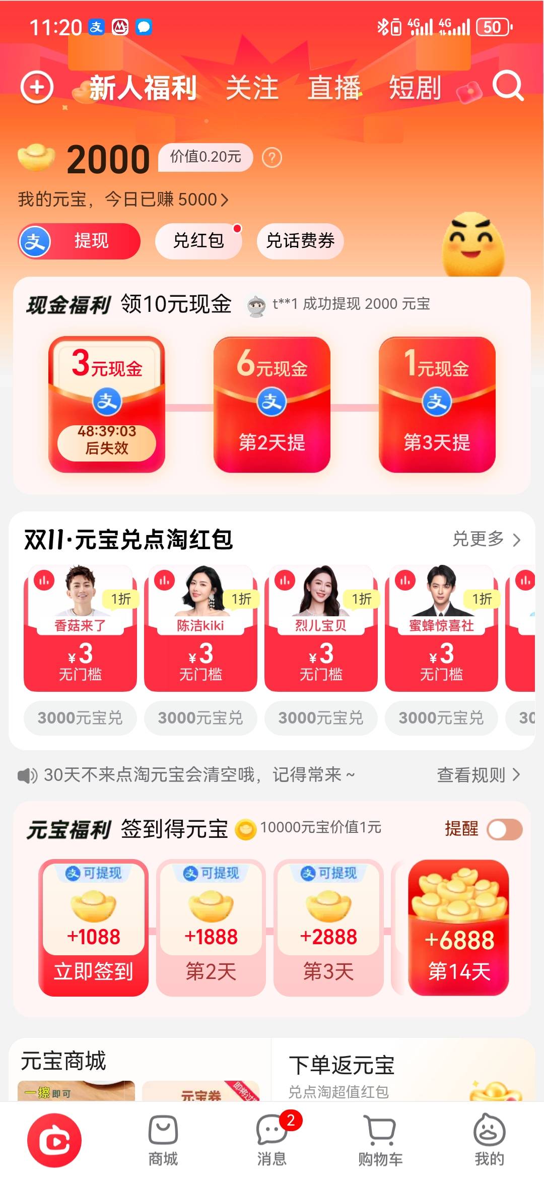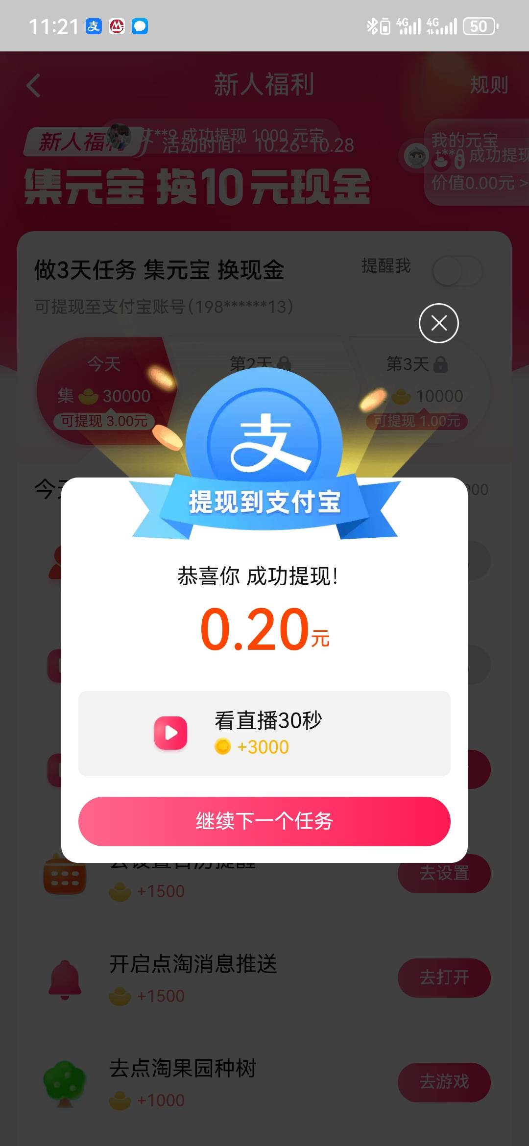 10-26日23:43桃宝现在放水,我刚中4.88元~