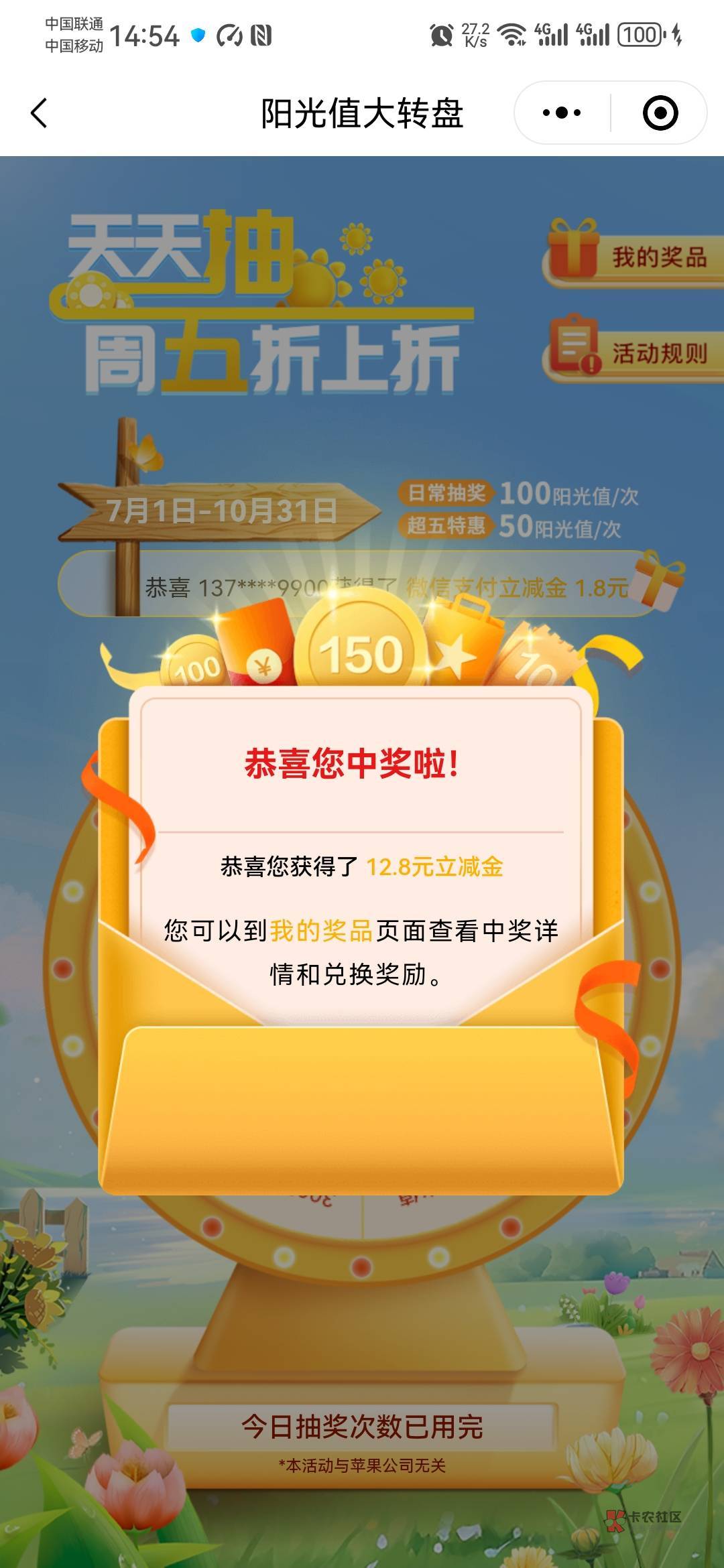 光大阳光值抽奖小水12.8