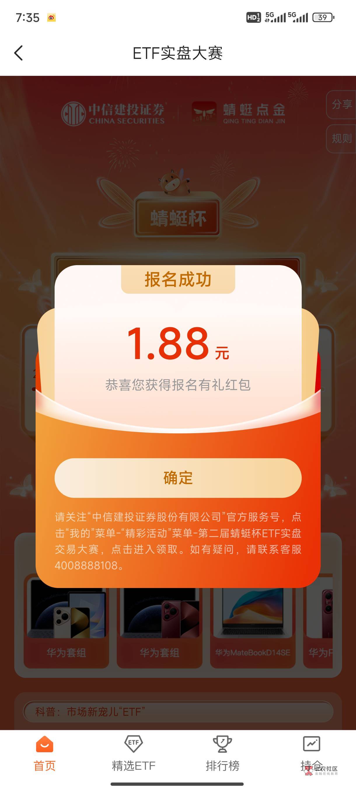 另外还有个ETF实盘大赛报名奖励1.88。入口在首页横幅广告。