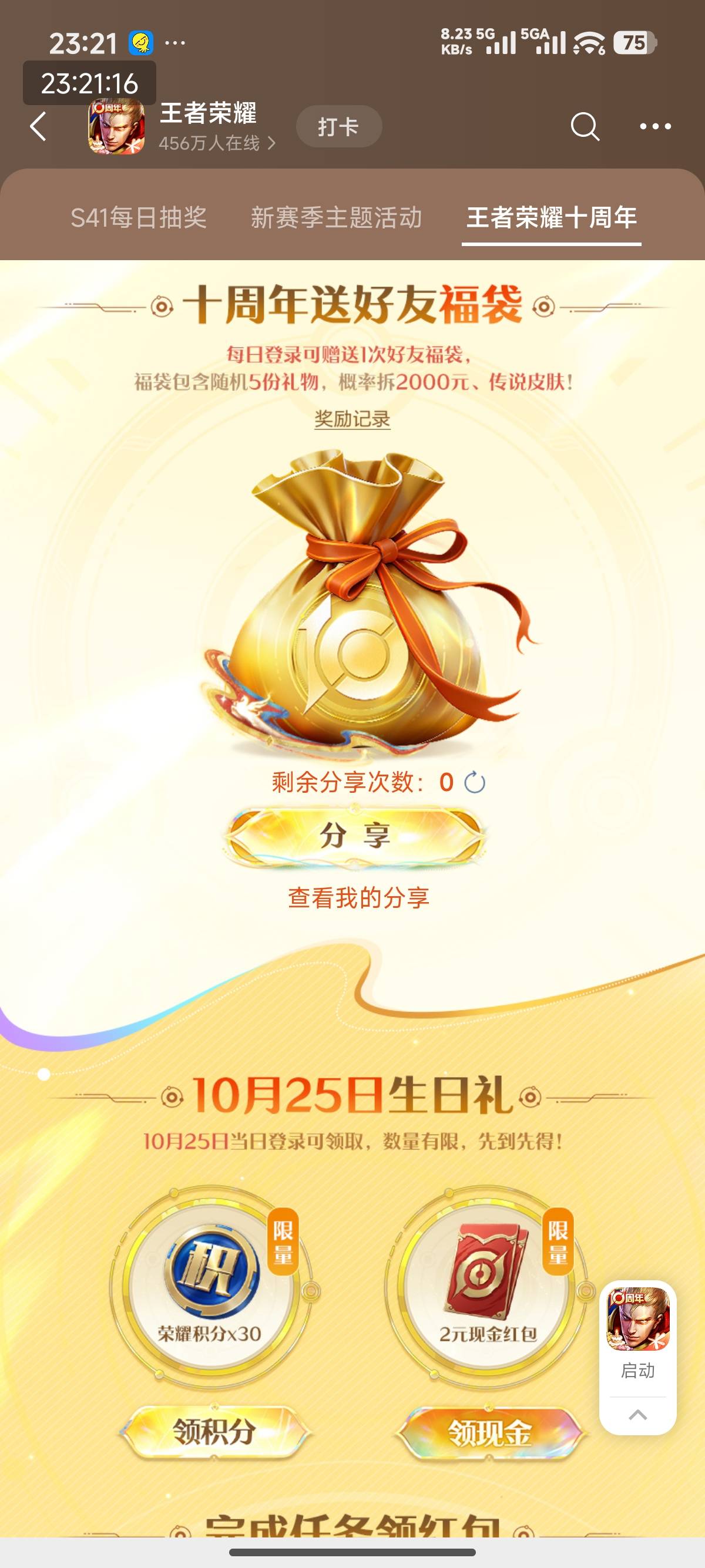 王者荣耀,链接在微信游戏圈,25号0点登录人人2,福袋还有抽奖。领到记得喊一声——王者荣耀生日快乐!