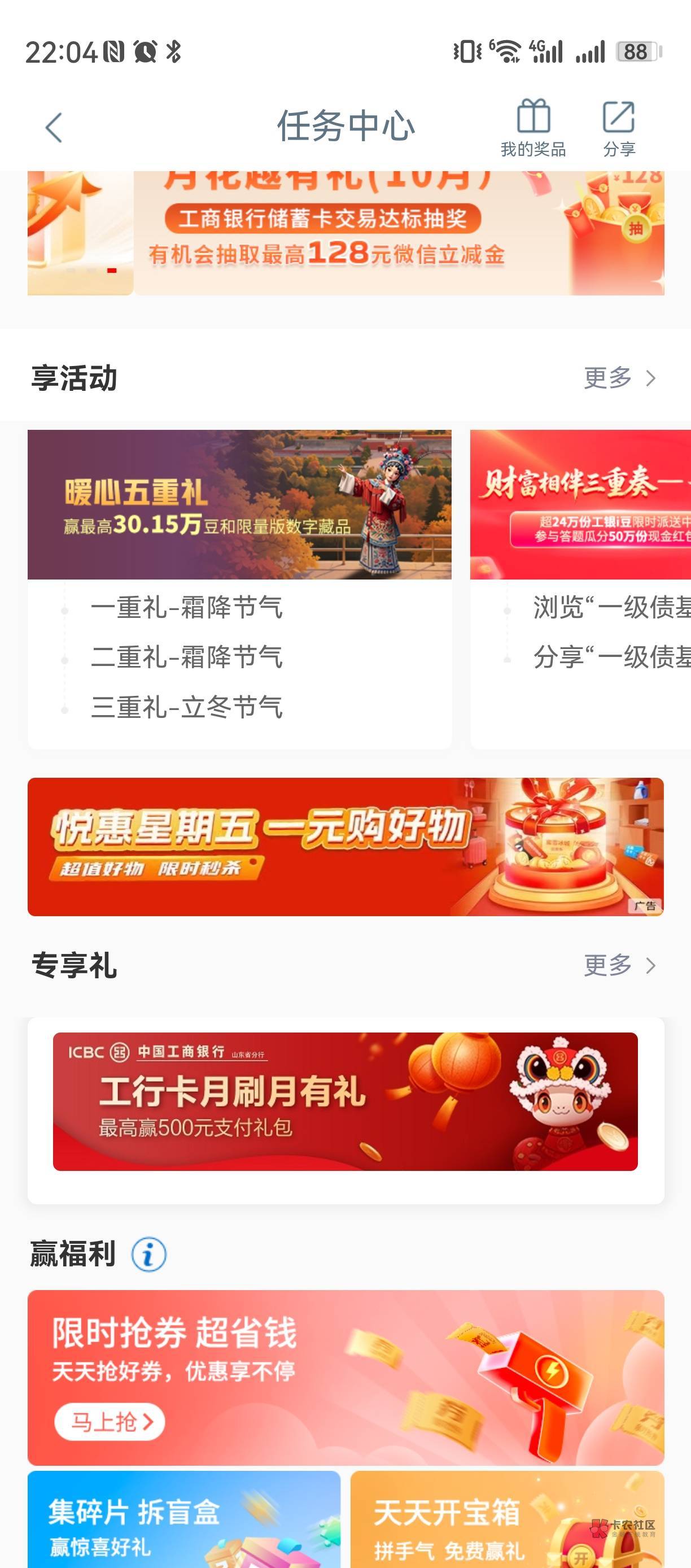 工行任务中心,悦惠星期五一元购,我是山东的卡