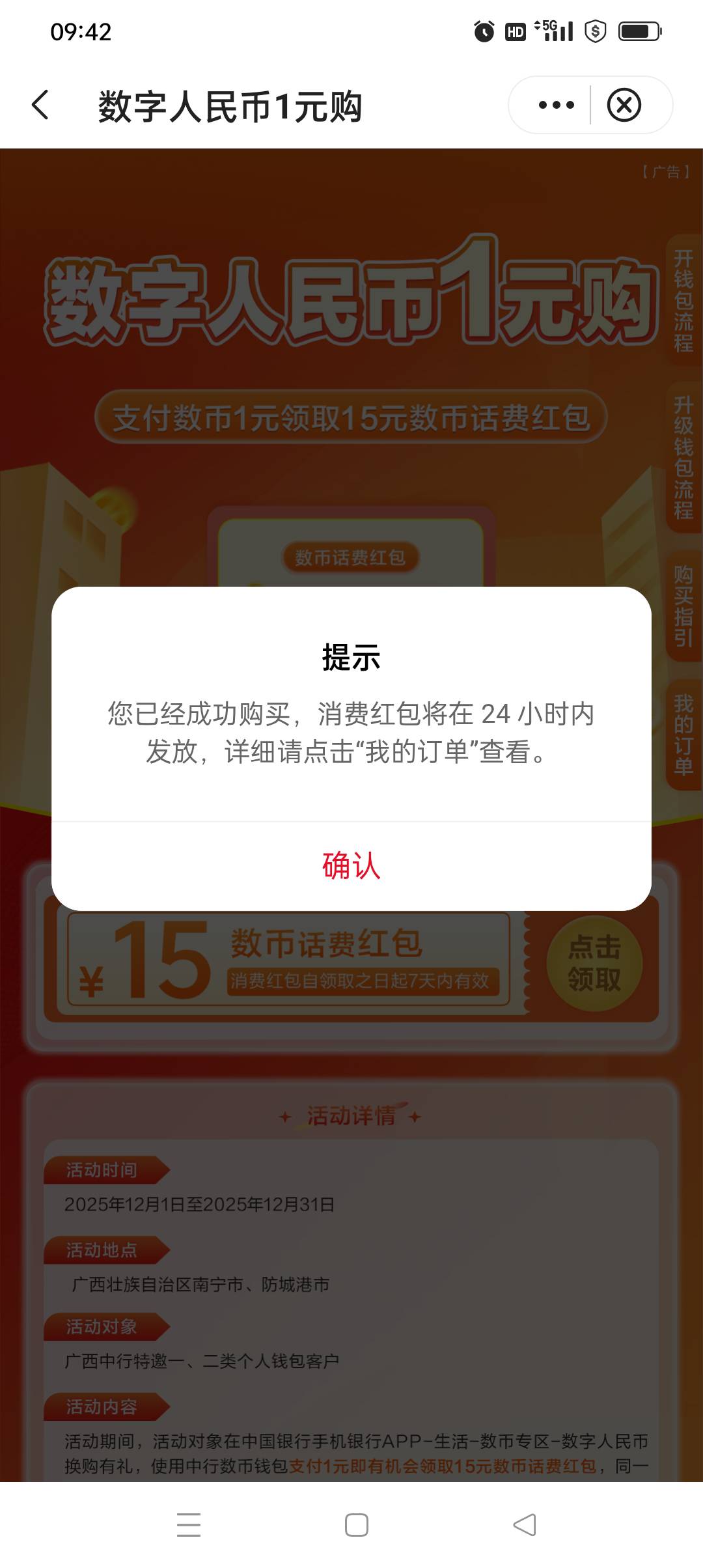 广西中行,1买15数币红包,可31充50话费,现在中行注册地可 ...