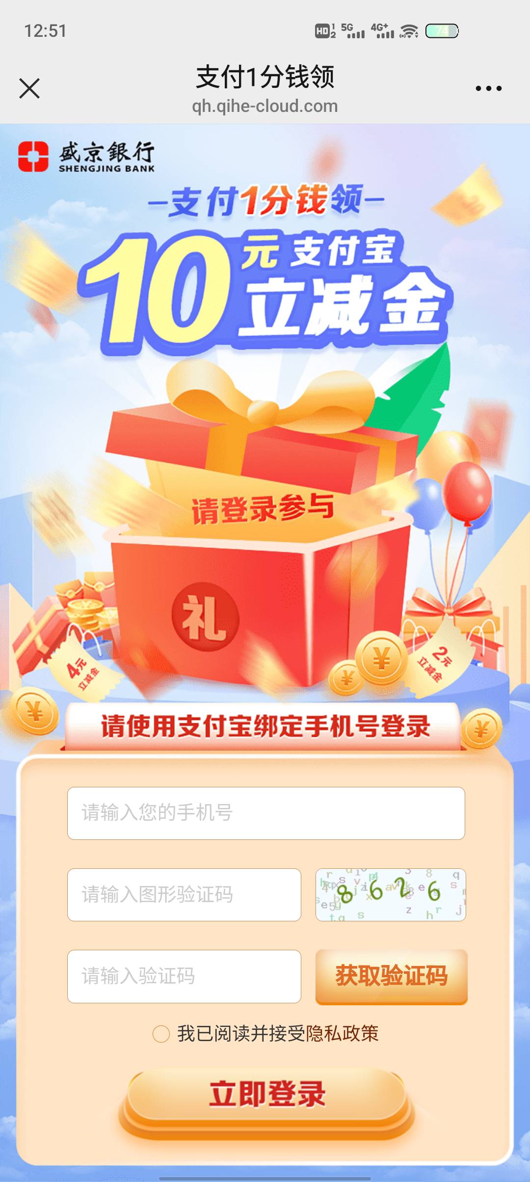 盛京银行一分钱买10立减金有卡的去试试