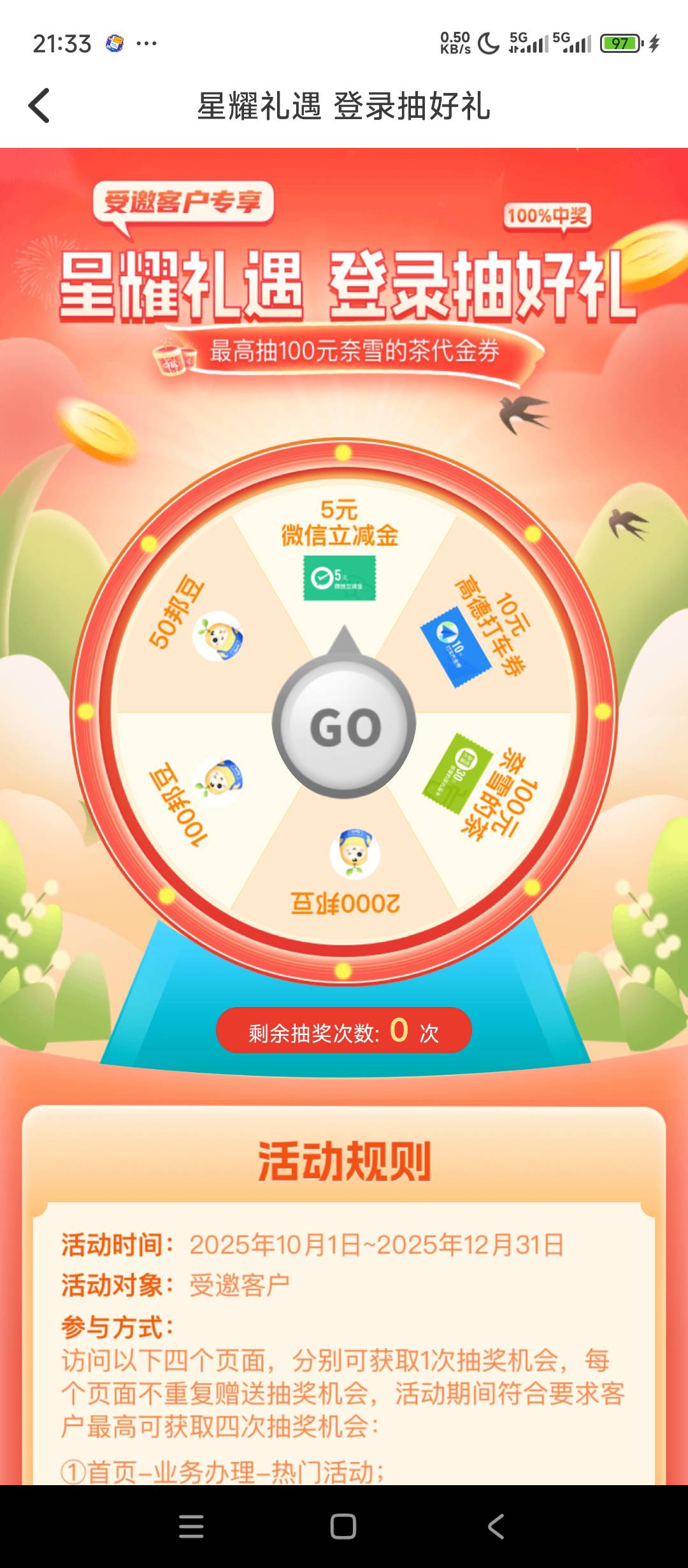 众邦银行首页横幅星耀礼遇登录抽好礼