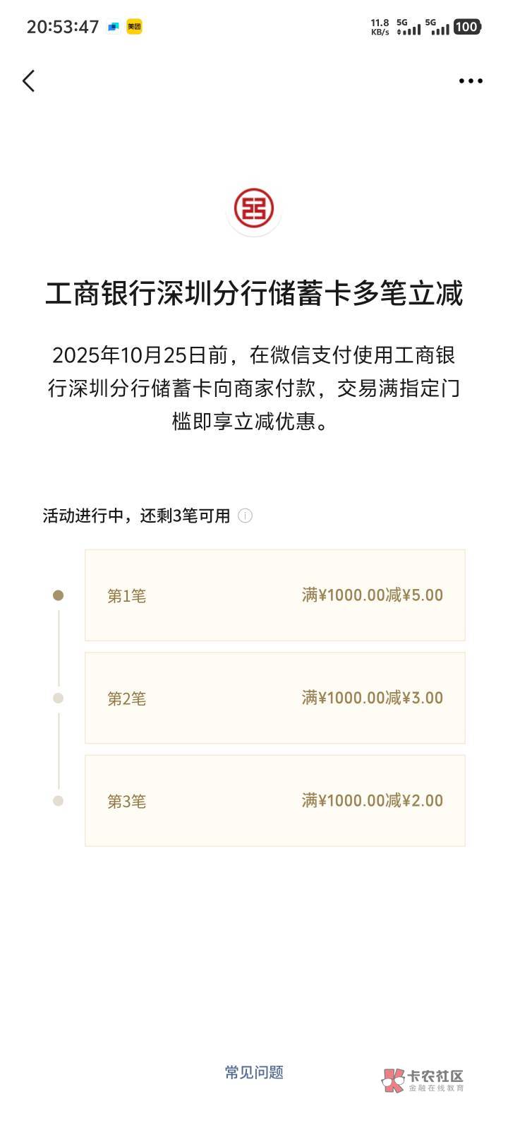 工商深圳分行储蓄卡,多笔立减