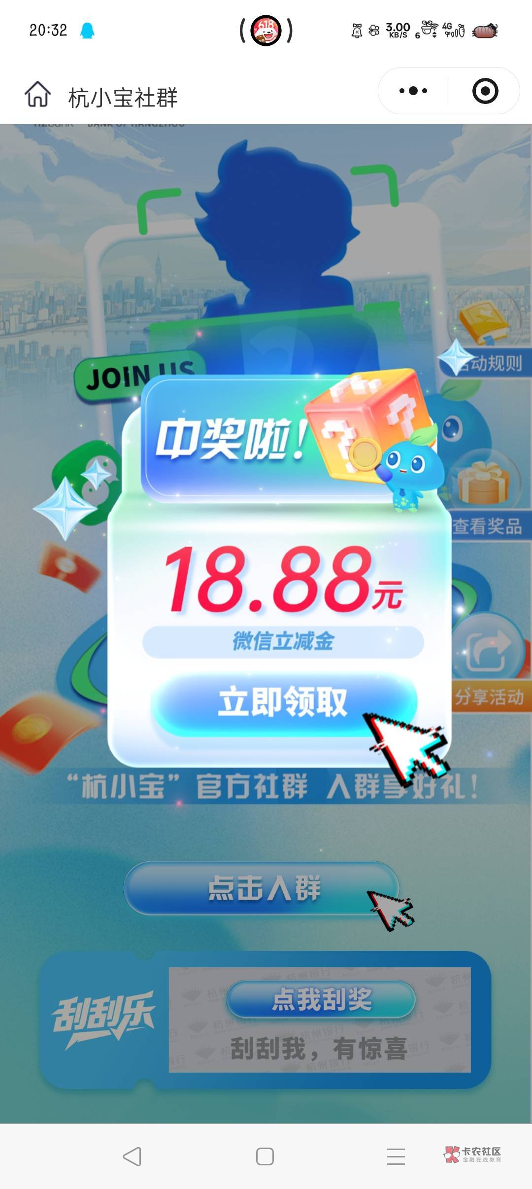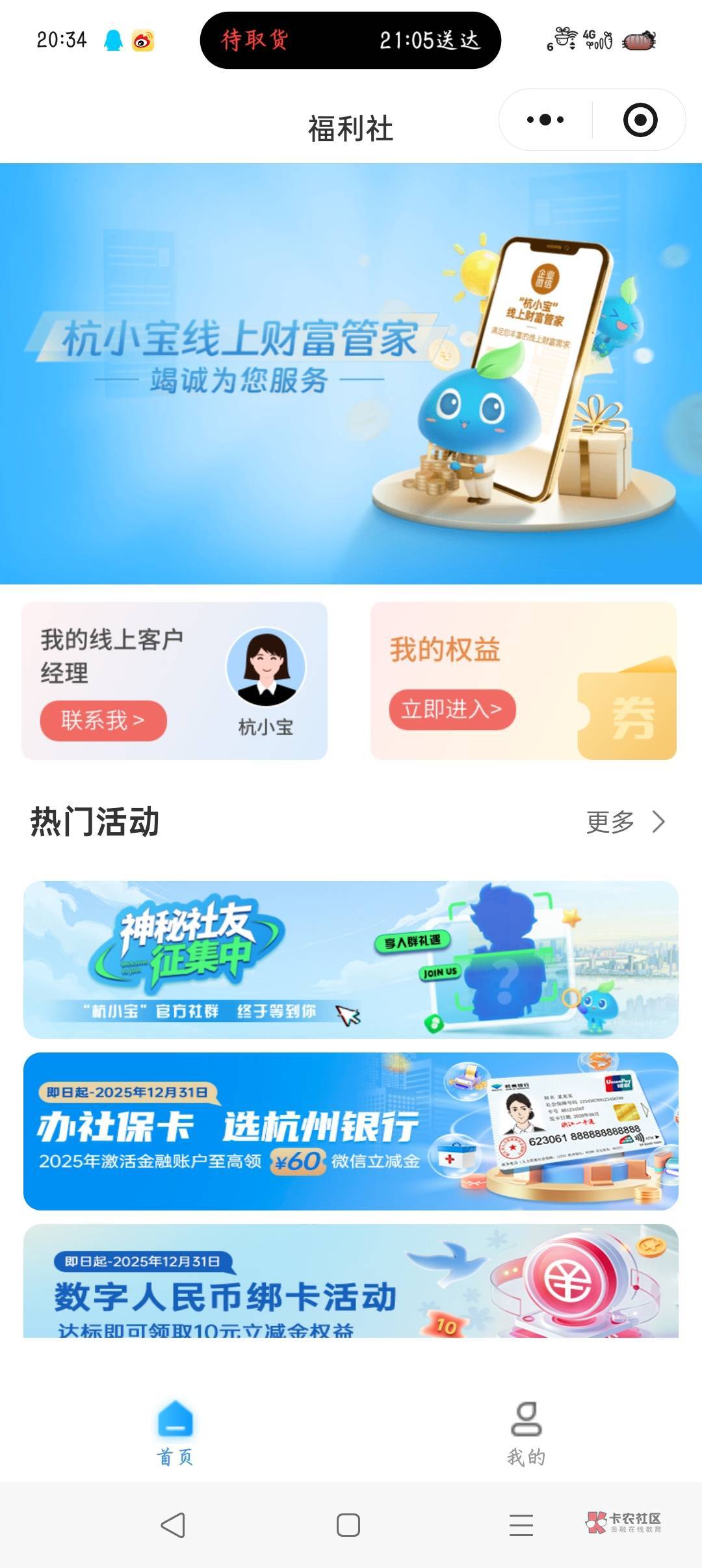 杭州银行福利社小程序,第一个活动进去加群抽奖18.88