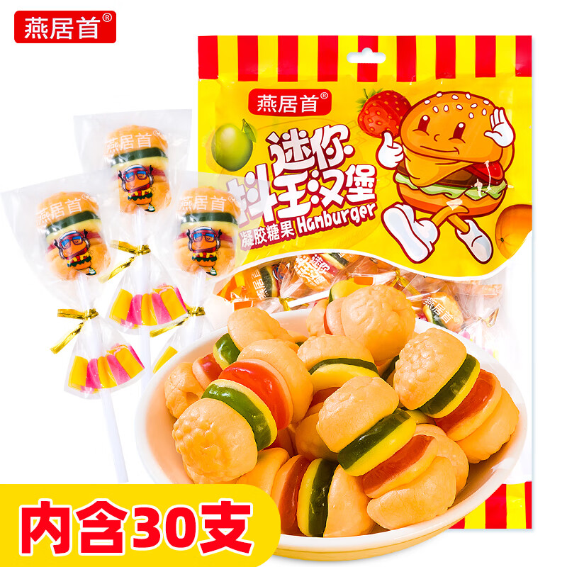 用plus300-30燕居首抖王汉堡糖30支270g 5种果味
