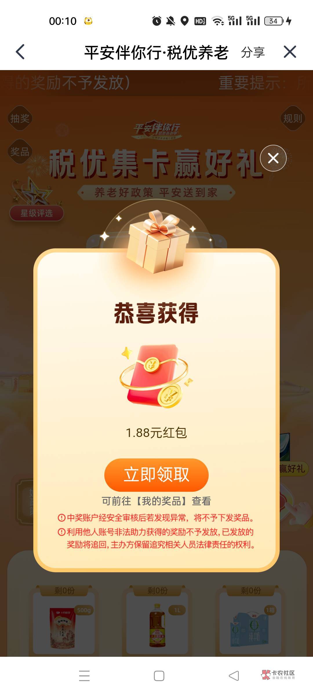 速度平安金管家活动第一个集卡有水1.88