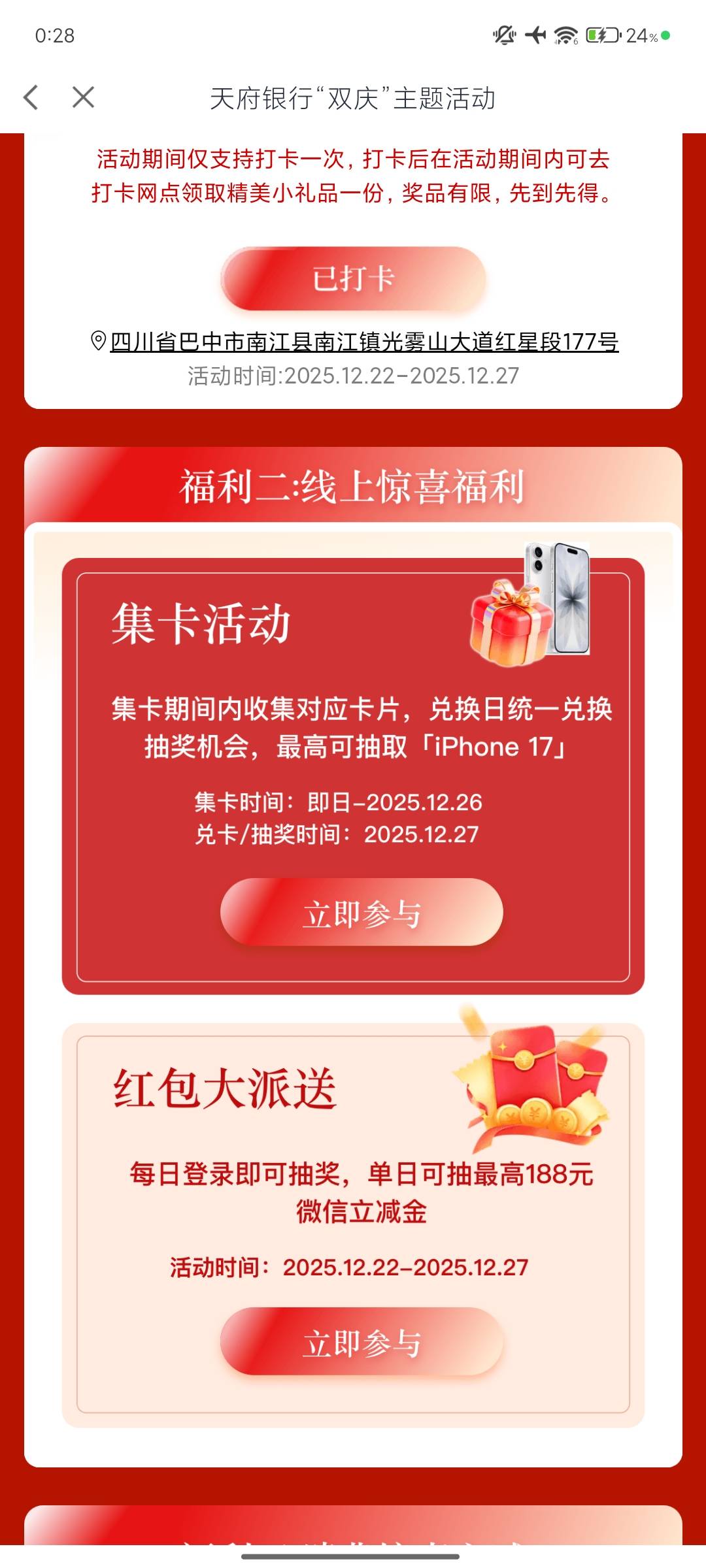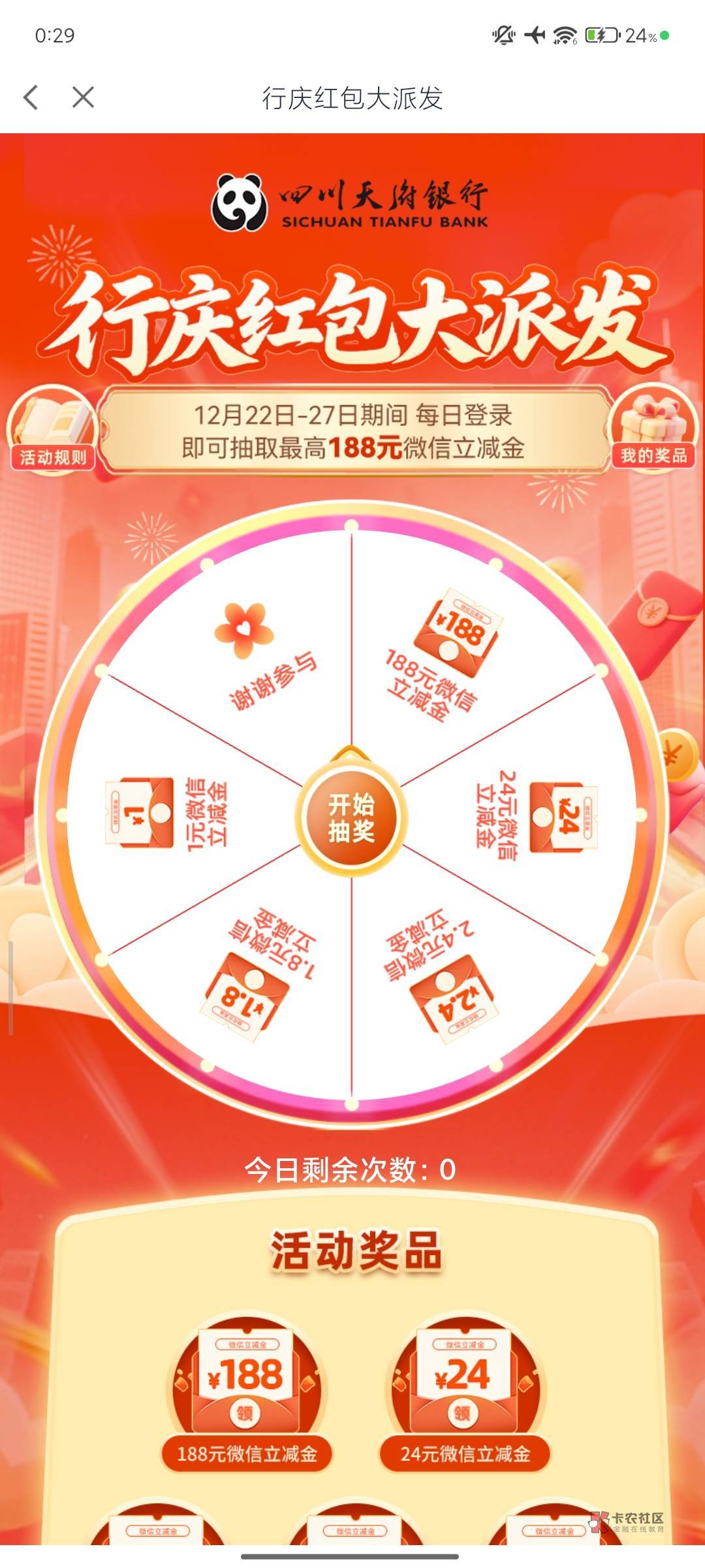 天府银行集卡每日抽奖这个能抽奖这个能抽了,可惜卡解绑绑不上了有卡的去吧。