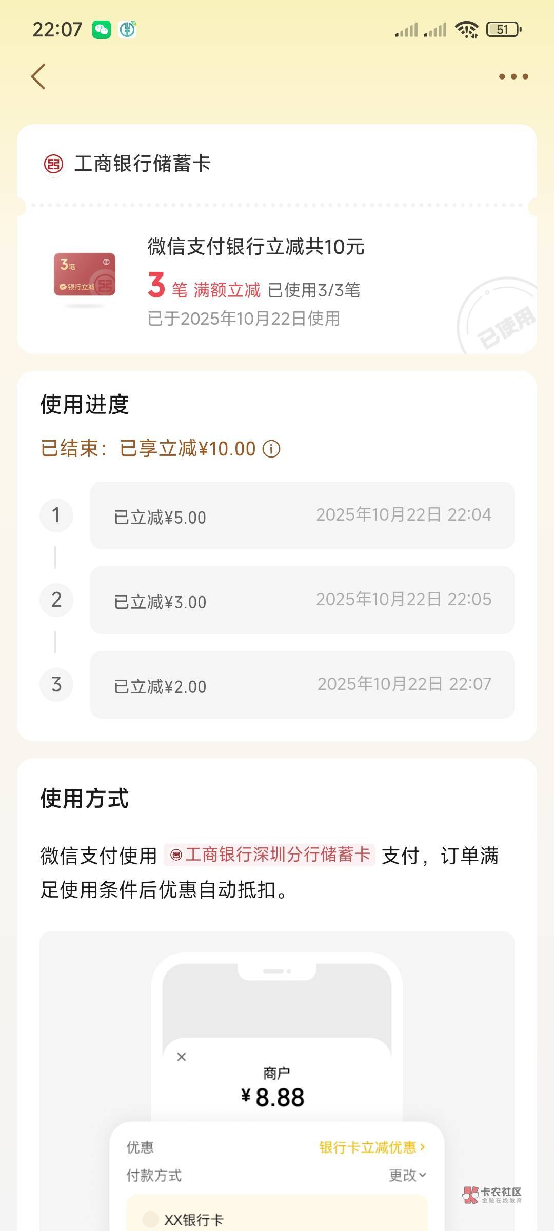 深圳工行有卡的去刷这个立减? ?3笔10块??减掉手续费润7