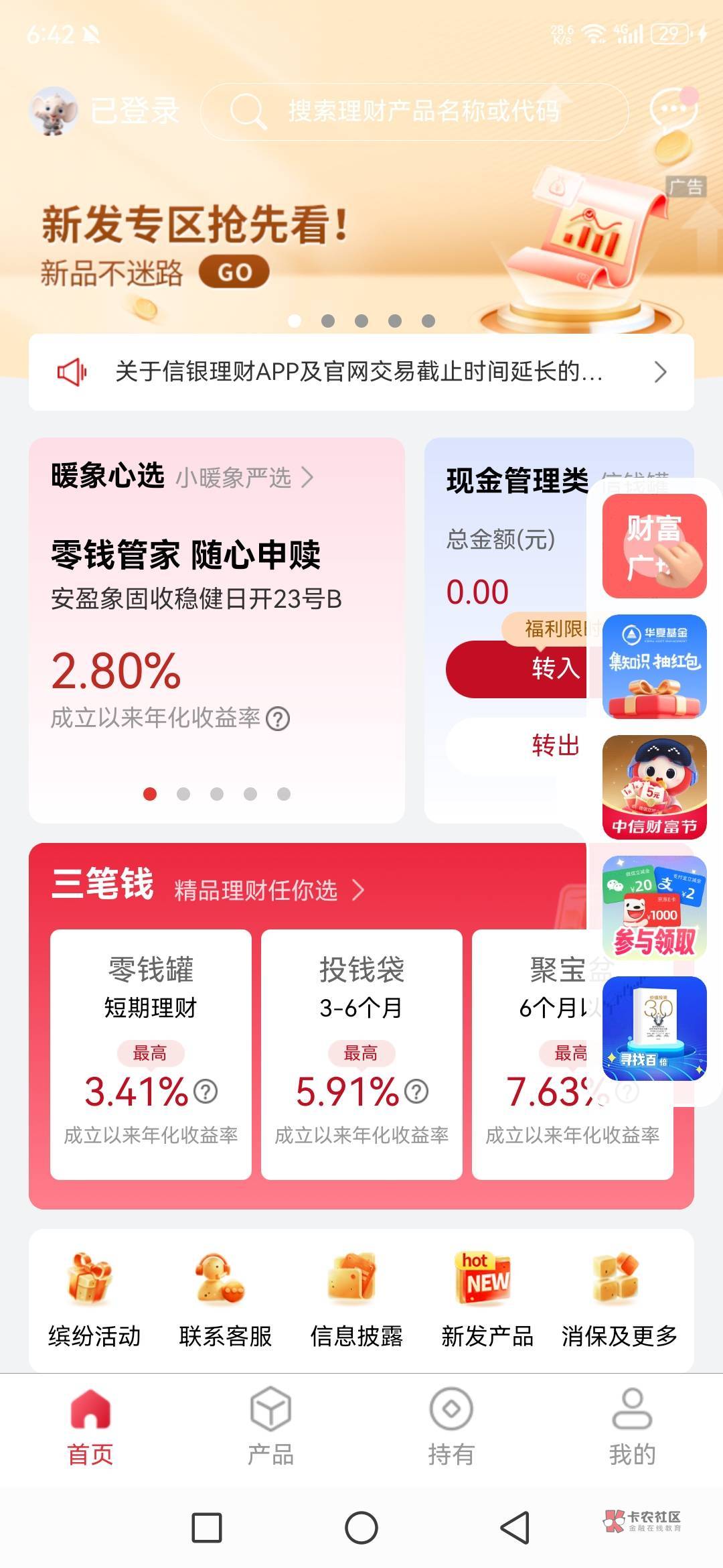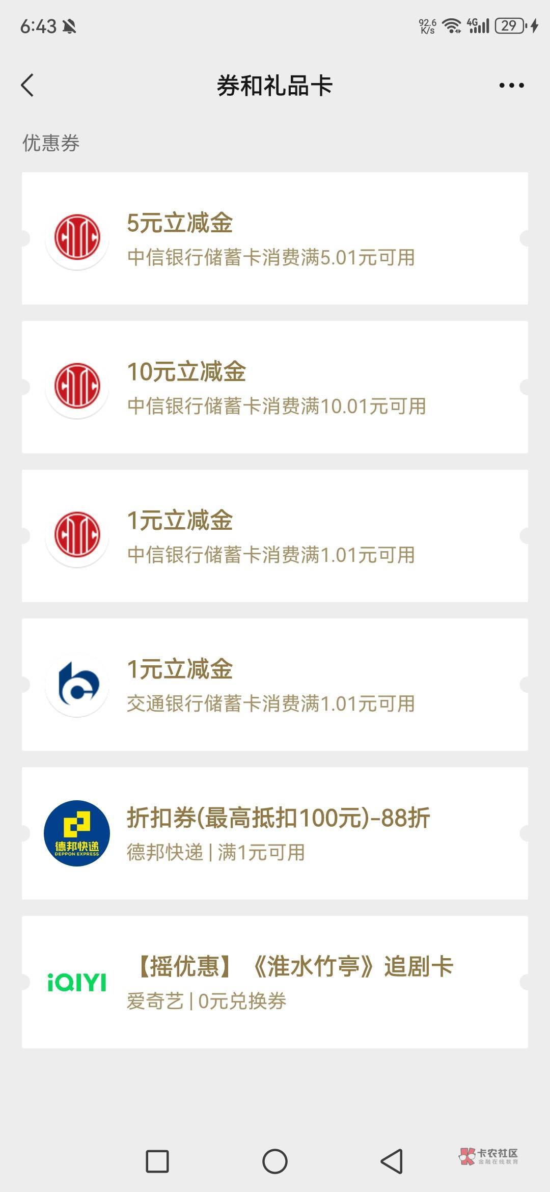 中信银行立减金活动,底部点到财富广场再点击右侧有活动可以抽奖,我刚领到一顿猪脚饭,最高66立减金。