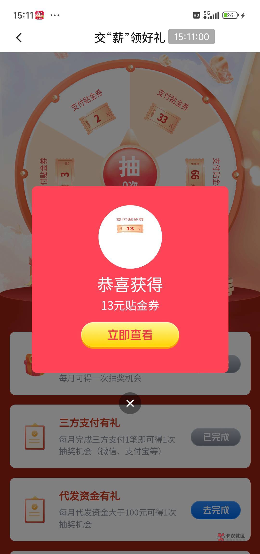 美团闪购底部抽奖点进去,3次机会抽1次,没中就等17点02卡