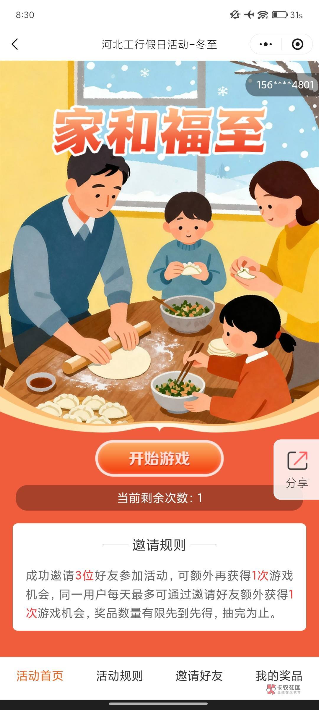 工行河北四季惊喜家和福至冬至假日活动~~