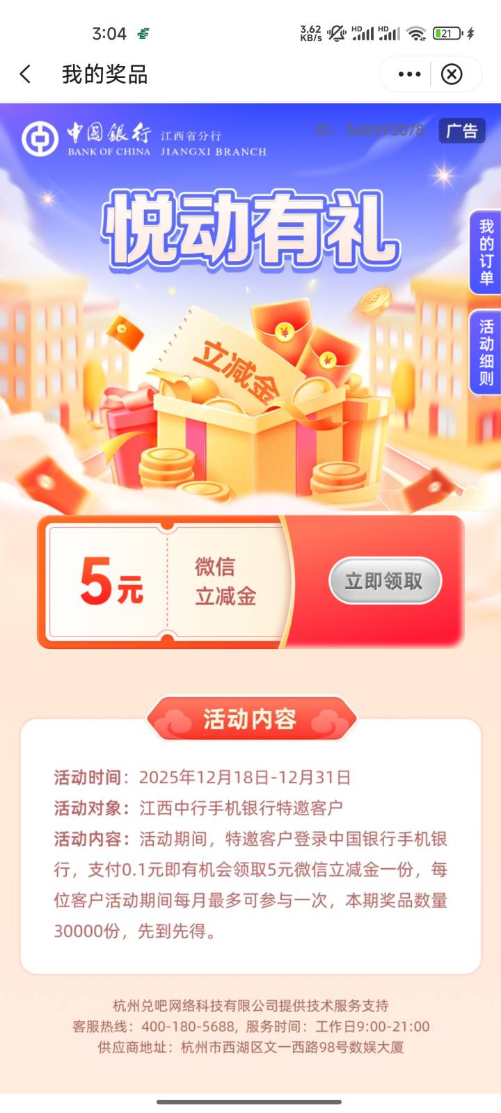 湖北农行V.x立减最低3.6白号参与我是黑号不中玩过的无视