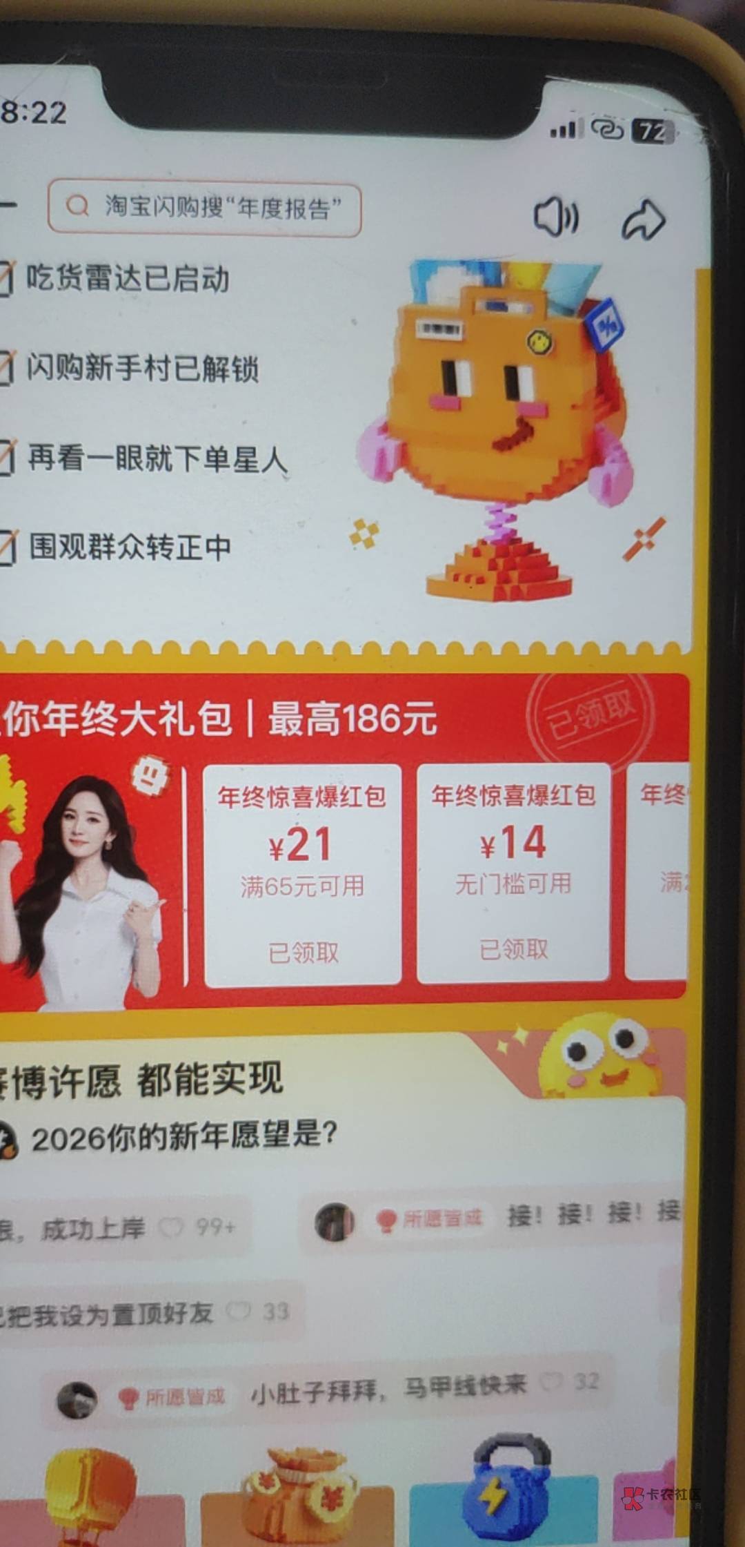 淘宝闪购APP这里查看年度报告可以领14无门槛