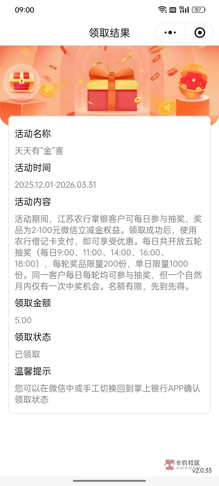 天天惊喜,一直是2元立减金。今天是5