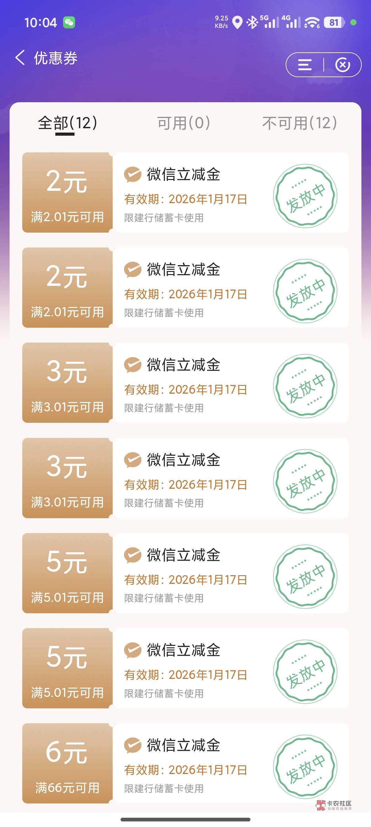 建行惠省钱出bug了,变成两份下发卡包