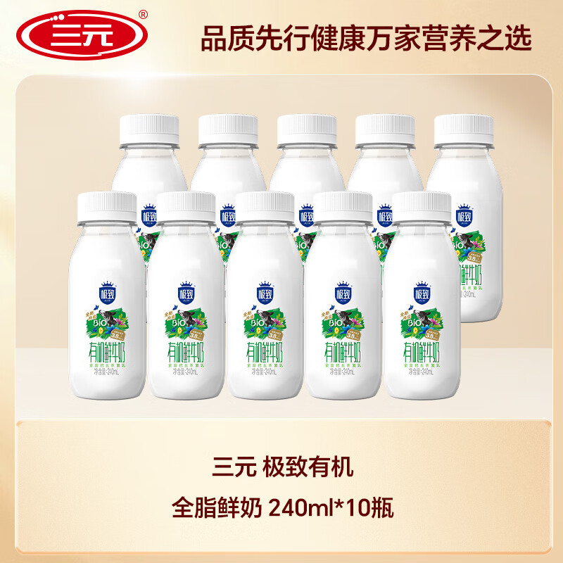 部分地区三元 极致 有机全脂鲜奶 240ml*10瓶组合装,5首单,10.9