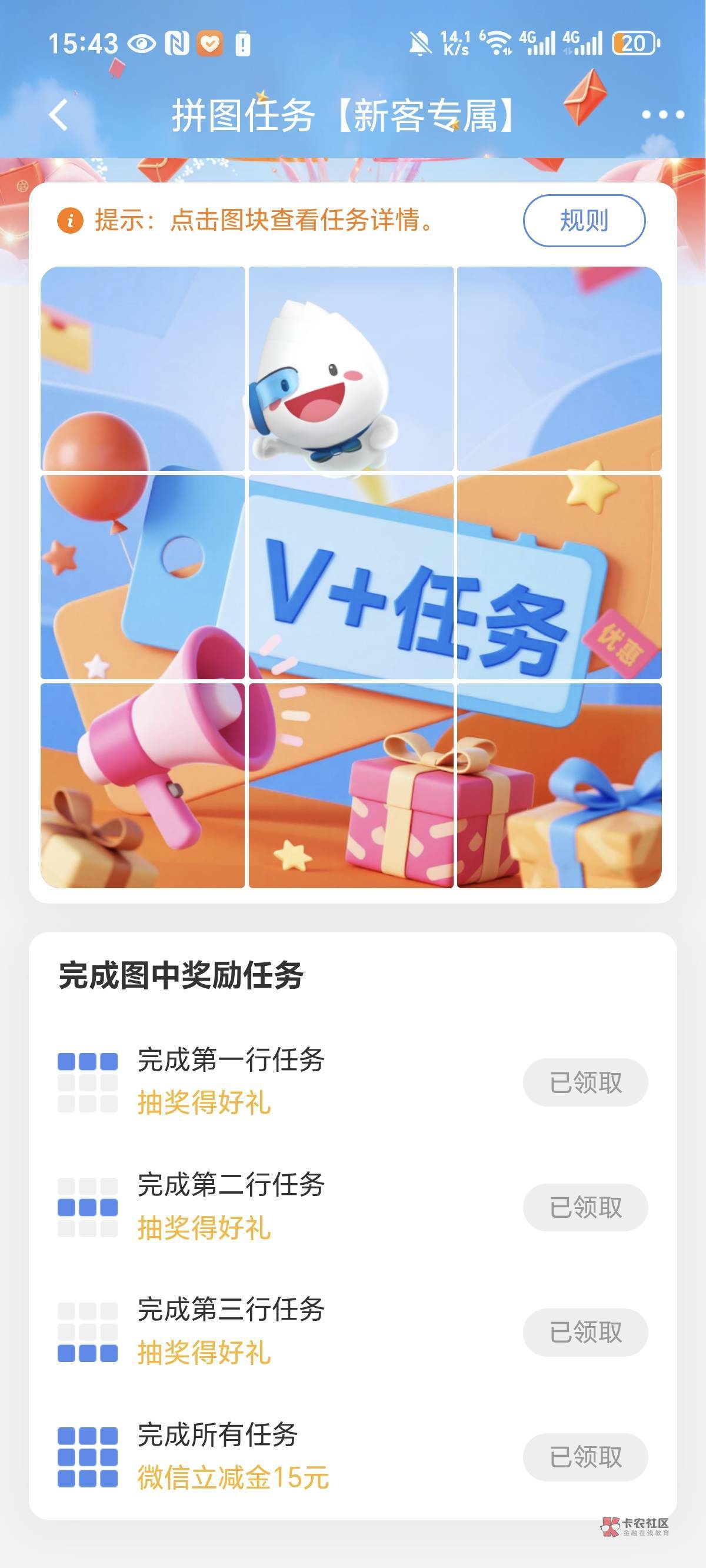 民生v+今天莫名其妙多了个拼图任务,v+任务最后面,说是新客专享但是我都注册手机银行
