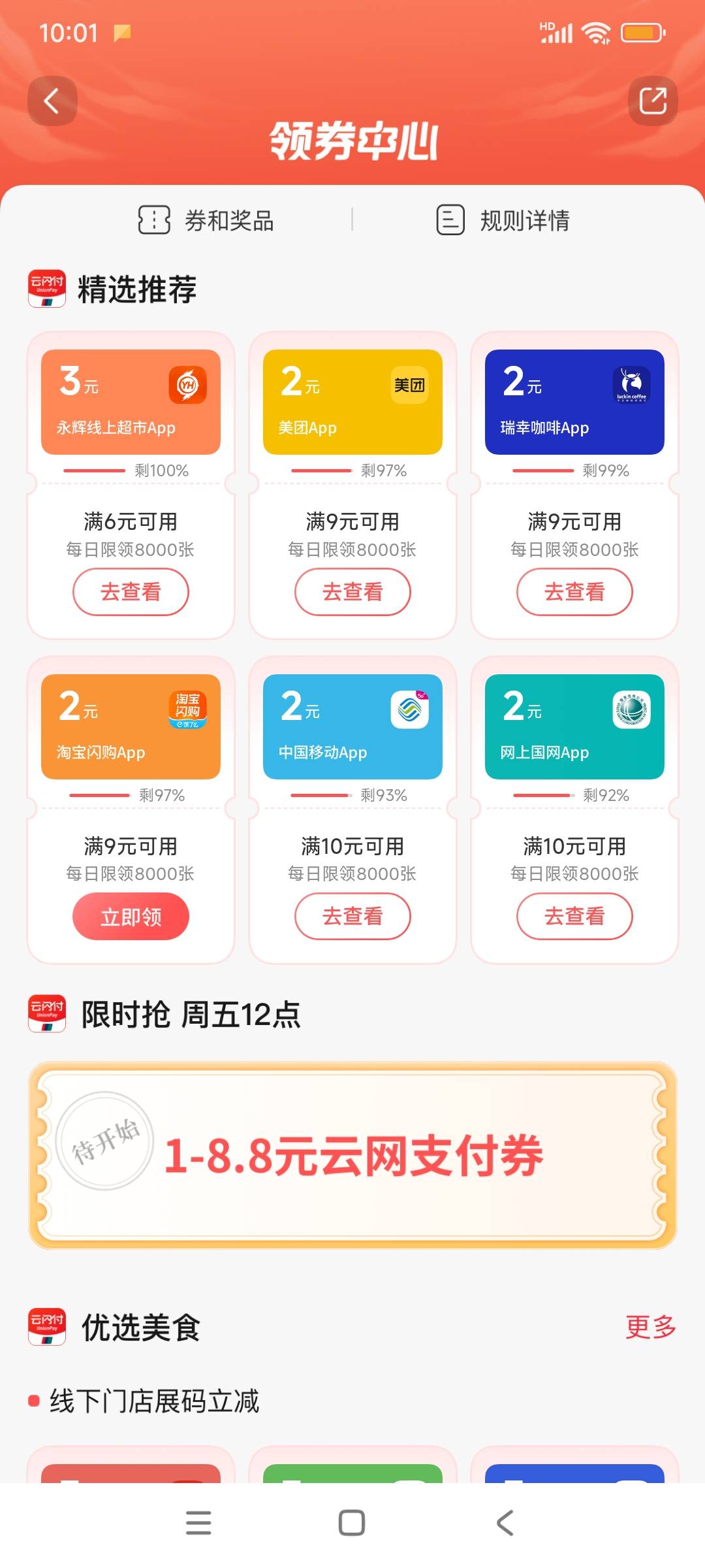海南云闪付领两张5