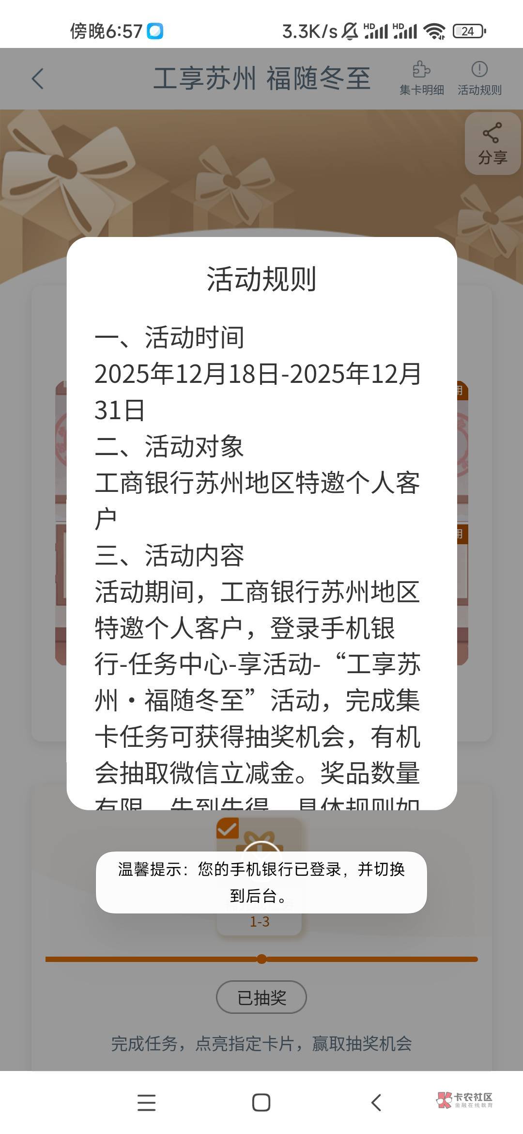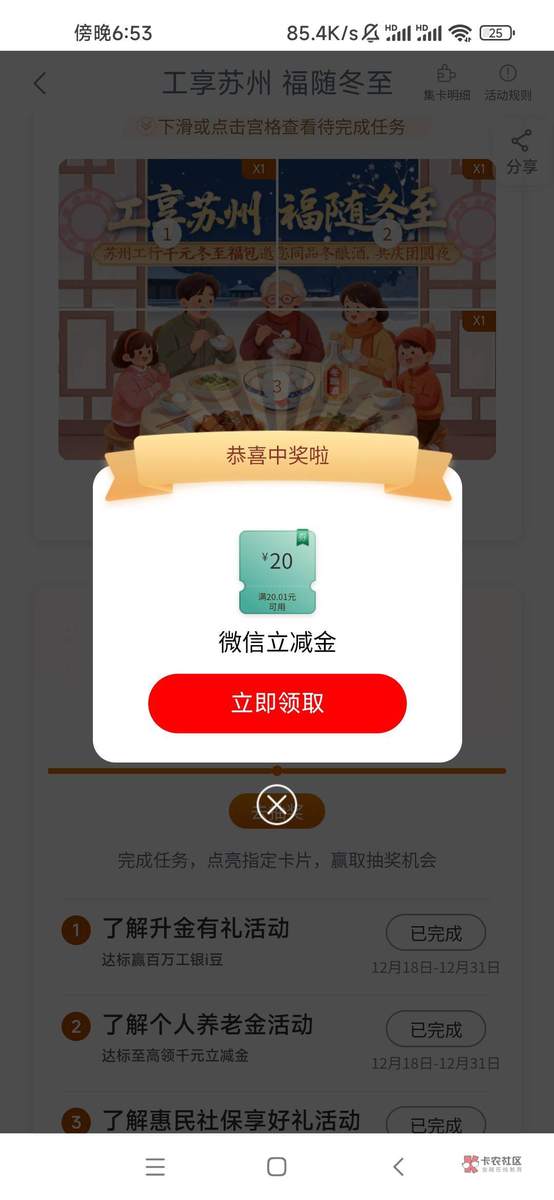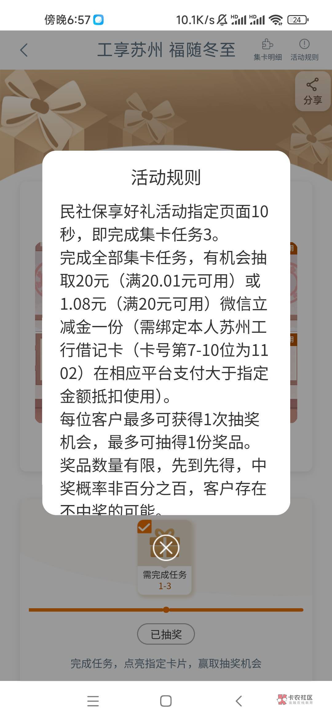 有工商苏州一类卡可以去享活动看看,我抽到20