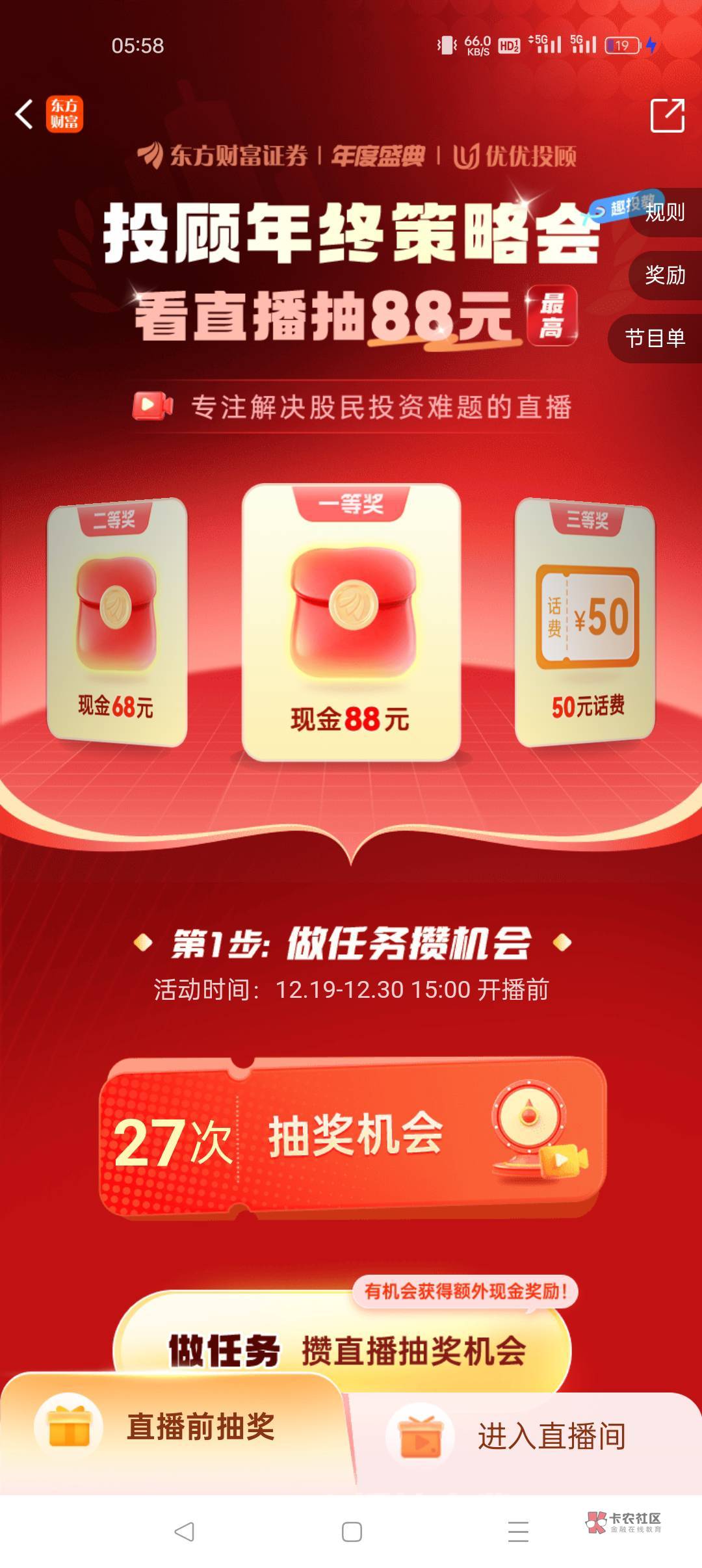 东方证券好像新的活动投顾年终,一共27次抽奖机会,过几天可以抽现金红包,20次答题也能有红包,抽奖需要12.30才能抽奖先做好任务