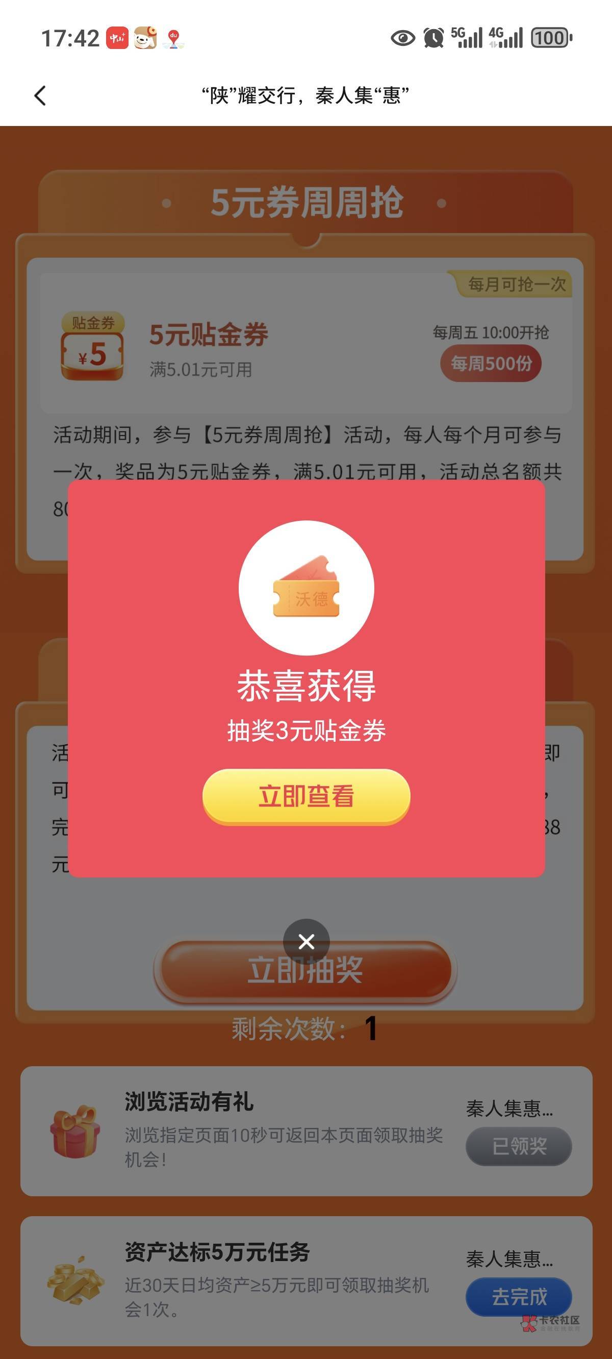南京银行送了张券